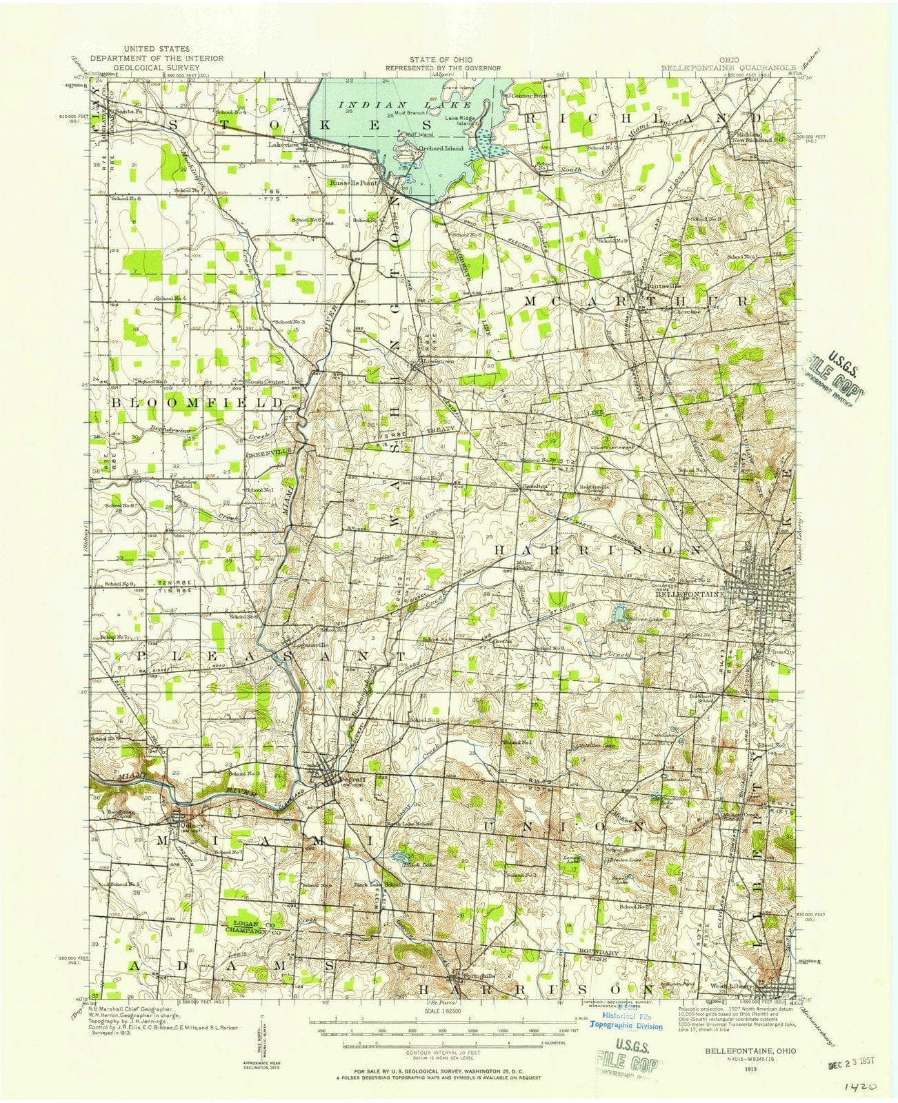 1913 Bellefontaine, OH - Ohio - USGS Topographic Map