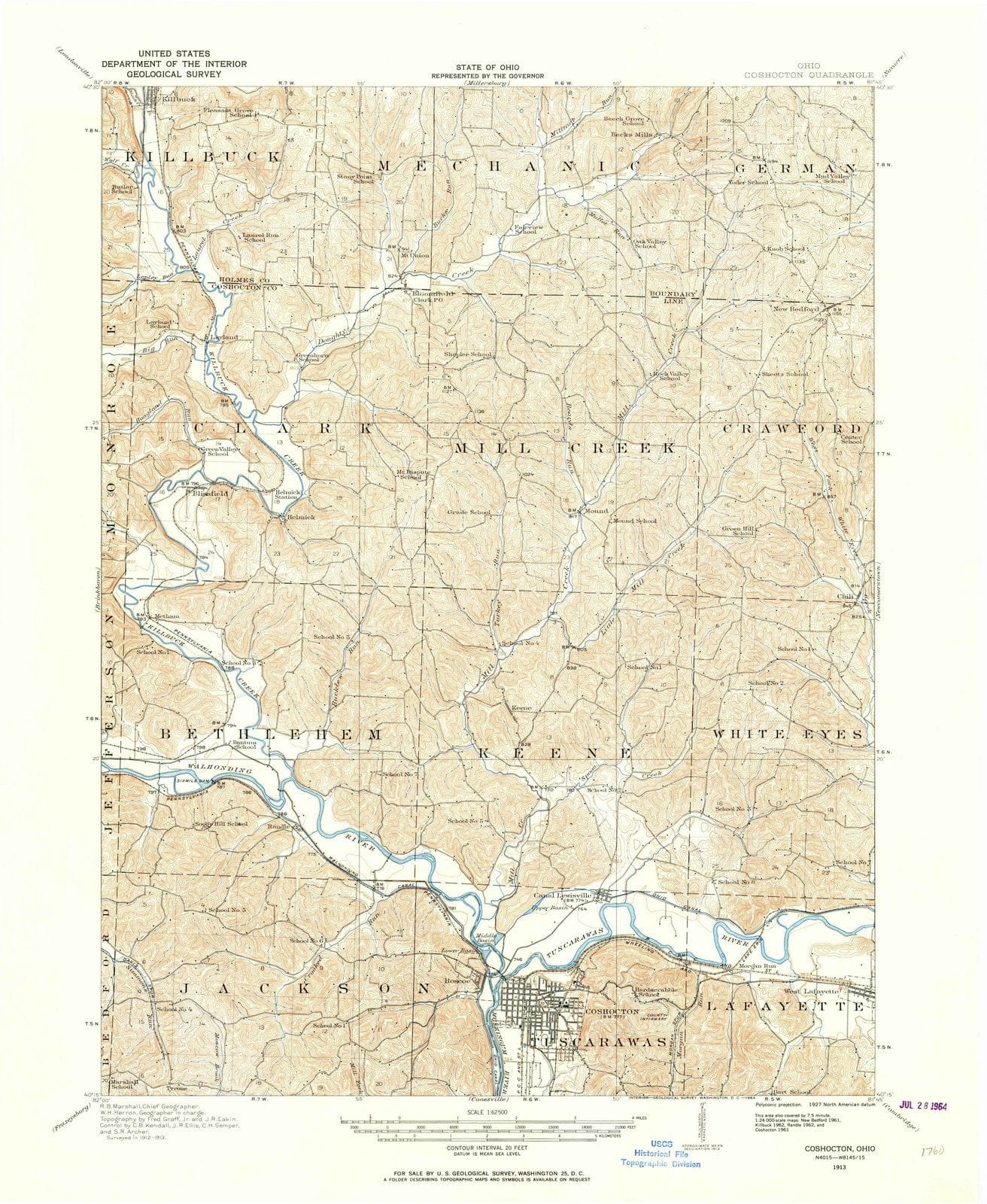 1913 Coshocton, OH - Ohio - USGS Topographic Map