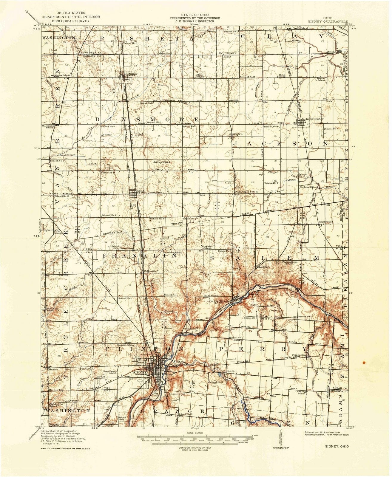 1913 Sidney, OH - Ohio - USGS Topographic Map