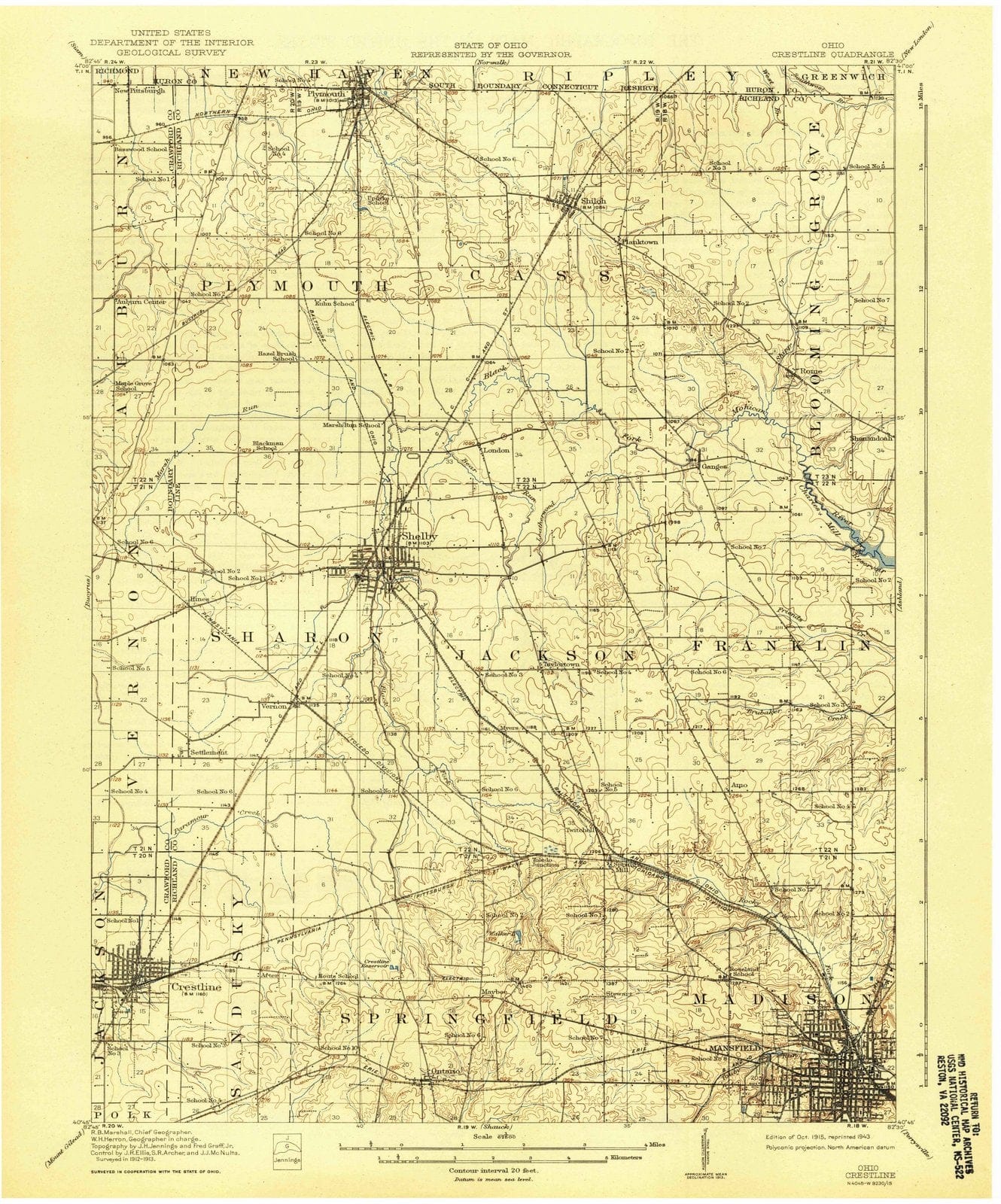 1915 Crestline, OH - Ohio - USGS Topographic Map