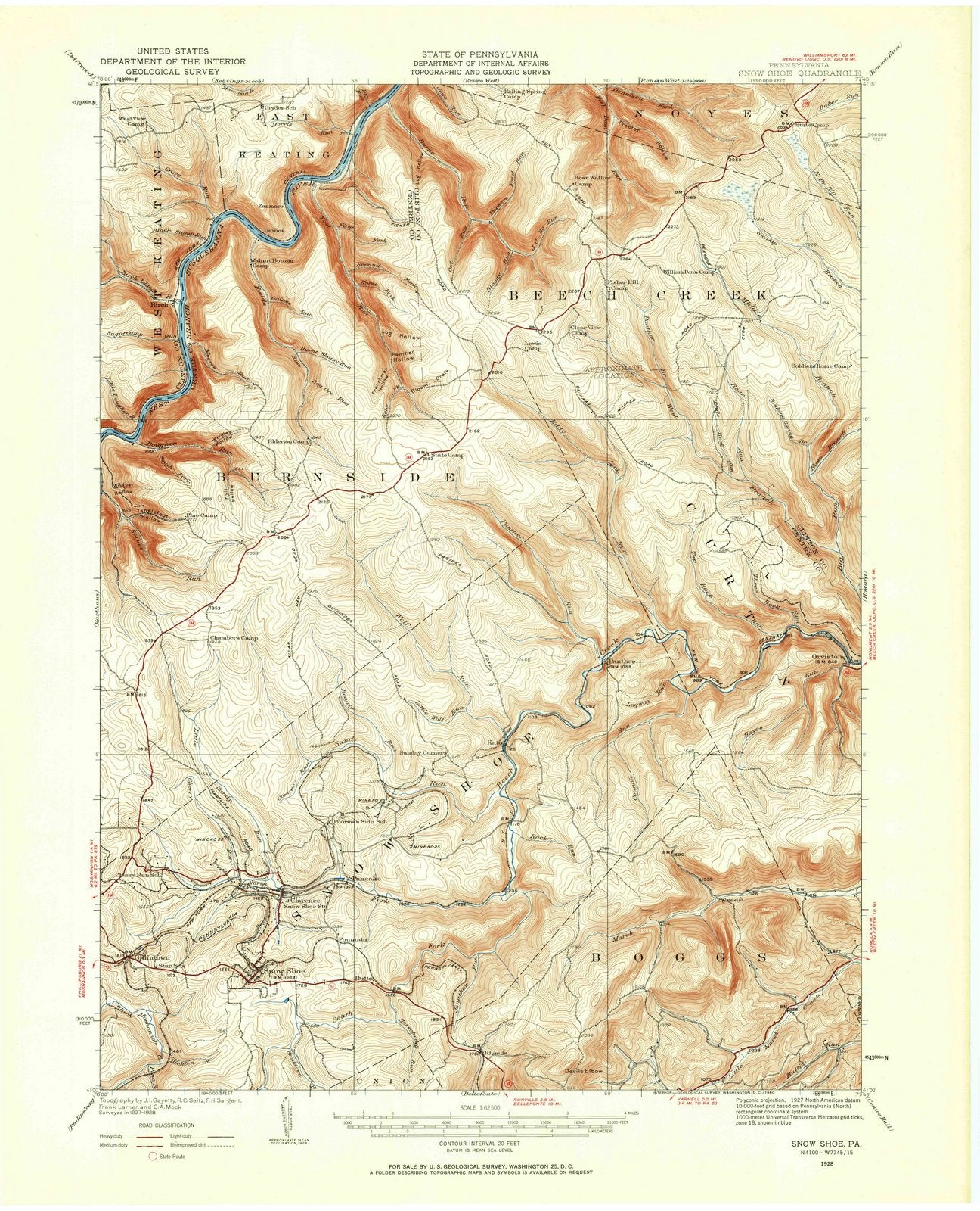 1928 Snow Shoe, PA - Pennsylvania - USGS Topographic Map