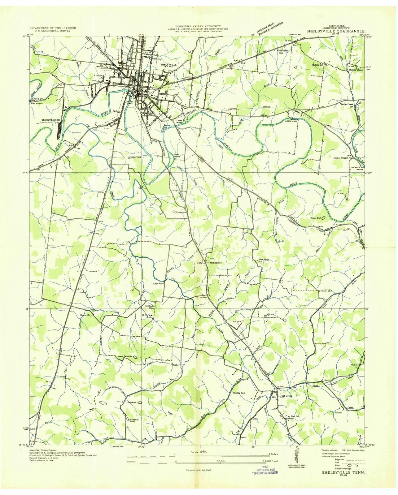 • 1936 Shelbyville, TN - Tennessee - USGS Topographic Map