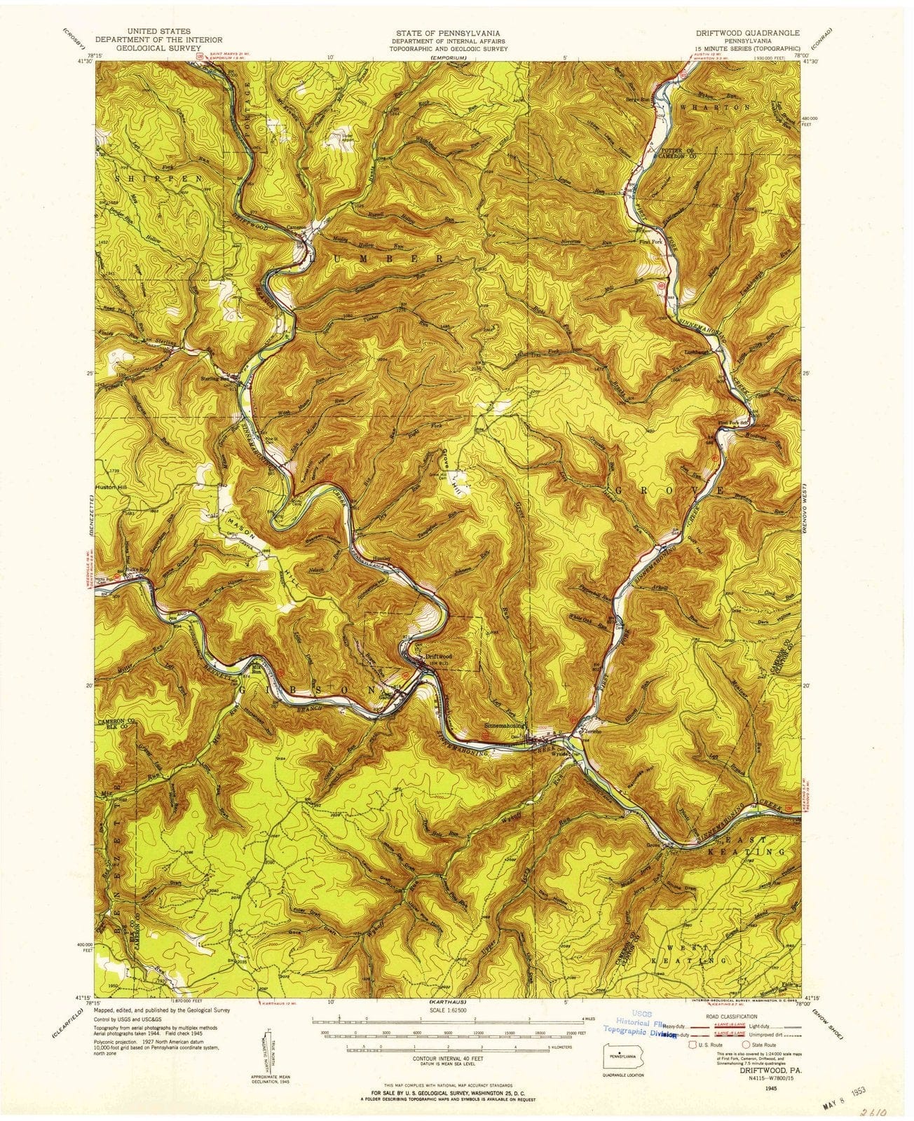 1945 Driftwood, PA - Pennsylvania - USGS Topographic Map v3
