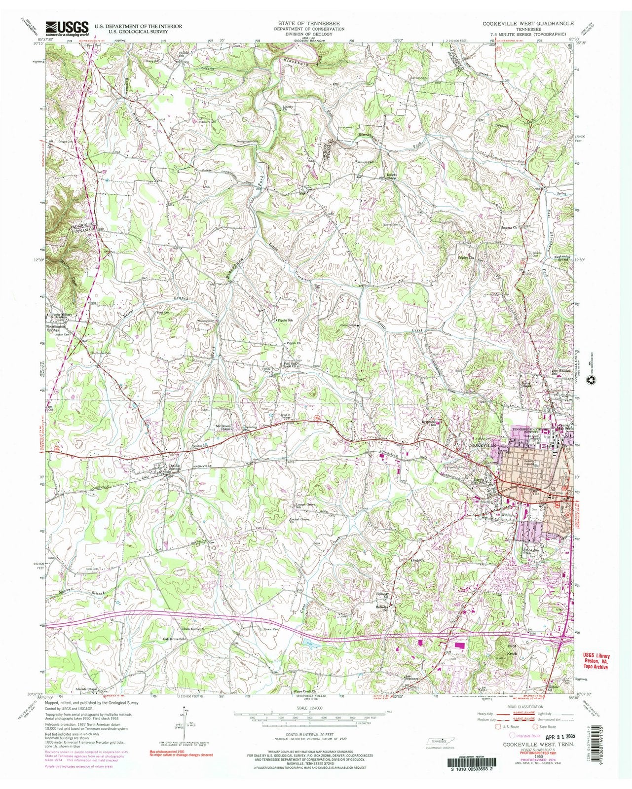 • 1953 Cookeville West, TN - Tennessee - USGS Topographic Map