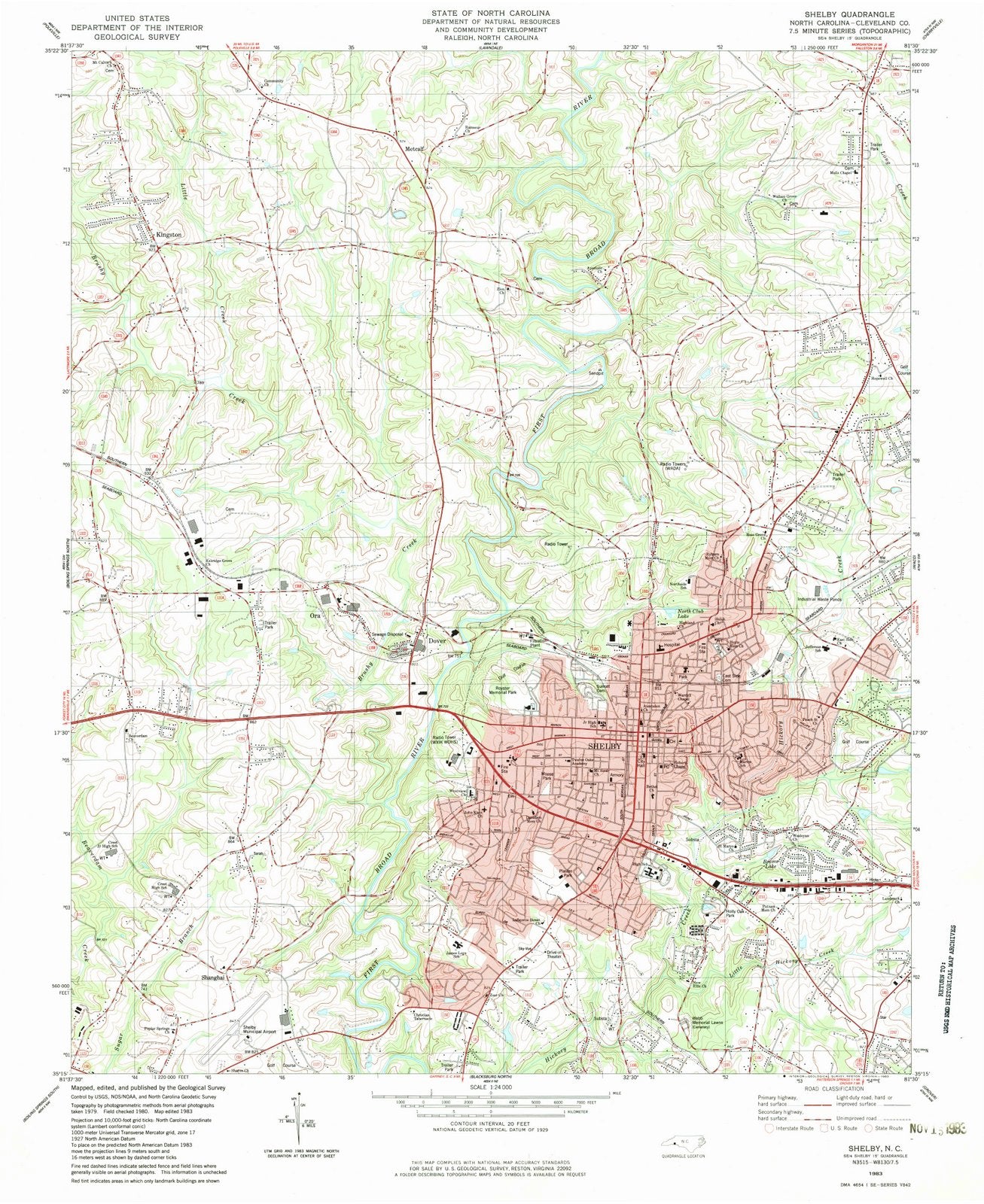 • 1983 Shelby, NC - North Carolina - USGS Topographic Map
