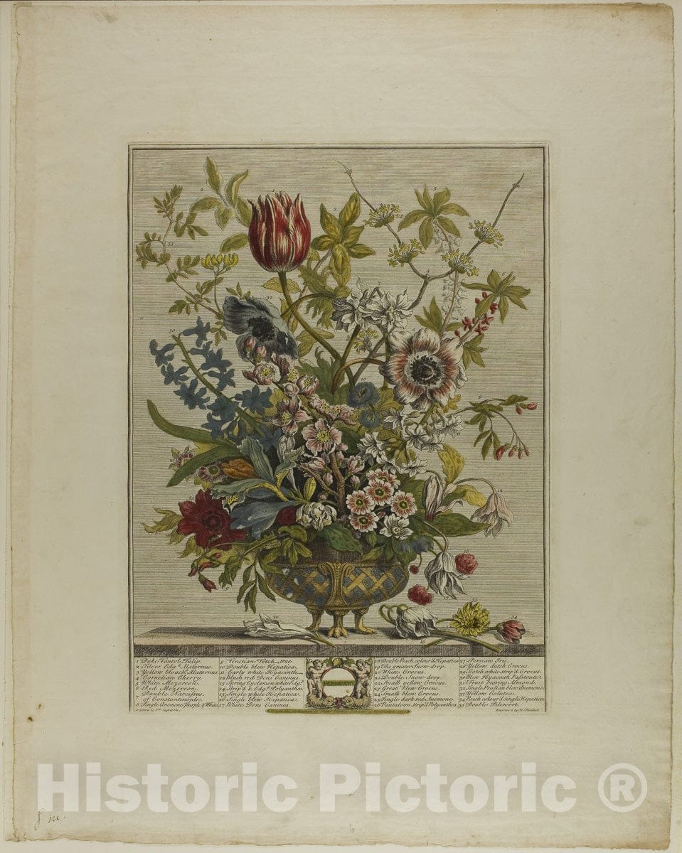 Art Print : February, from Twelve Months of Flowers, Henry Fletcher, c 1807, Vintage Wall Decor :