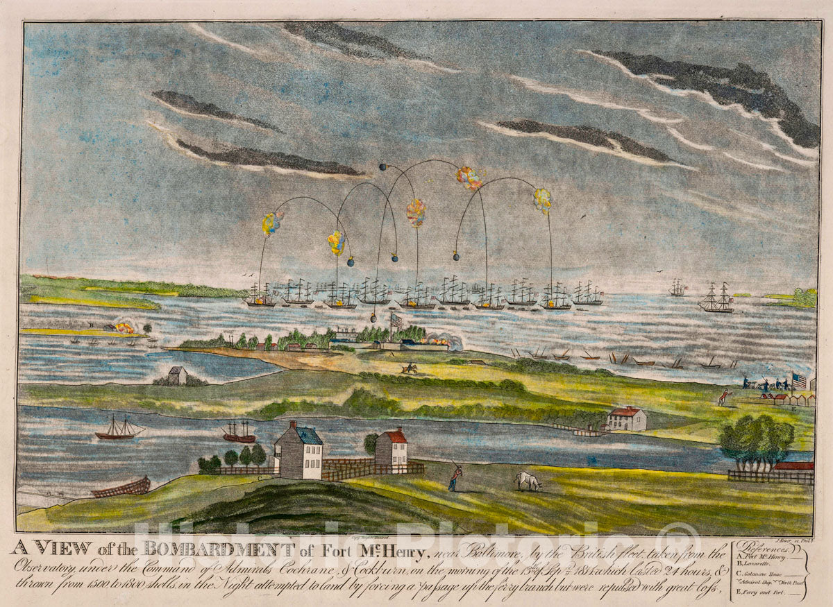Art Print : A View of The Bombardment of Fort McHenry, Near Baltimore, by The British Fleet. - Vintage Wall Art