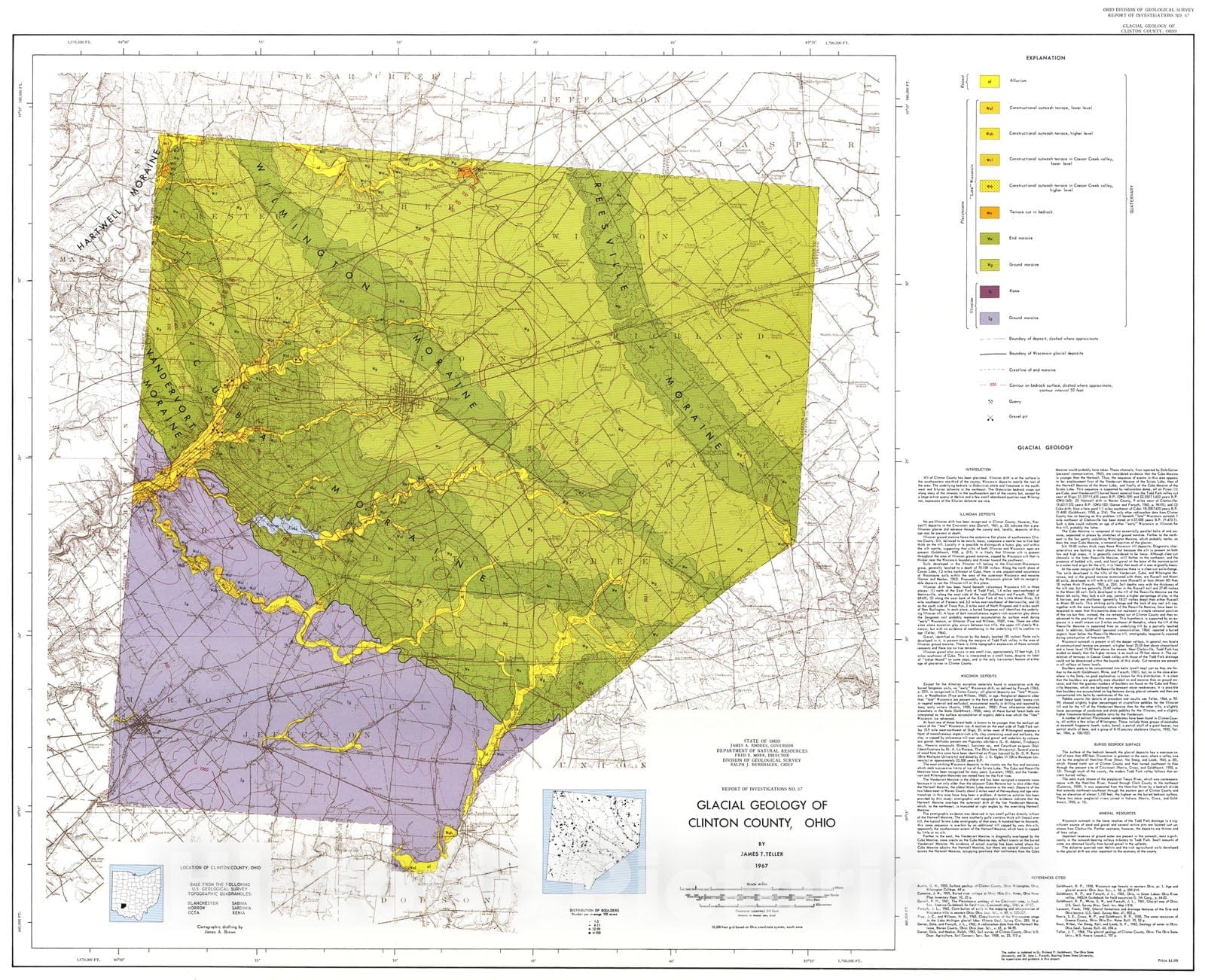 Map : Glacial geology of Clinton County, Ohio, 1967 Cartography Wall Art :