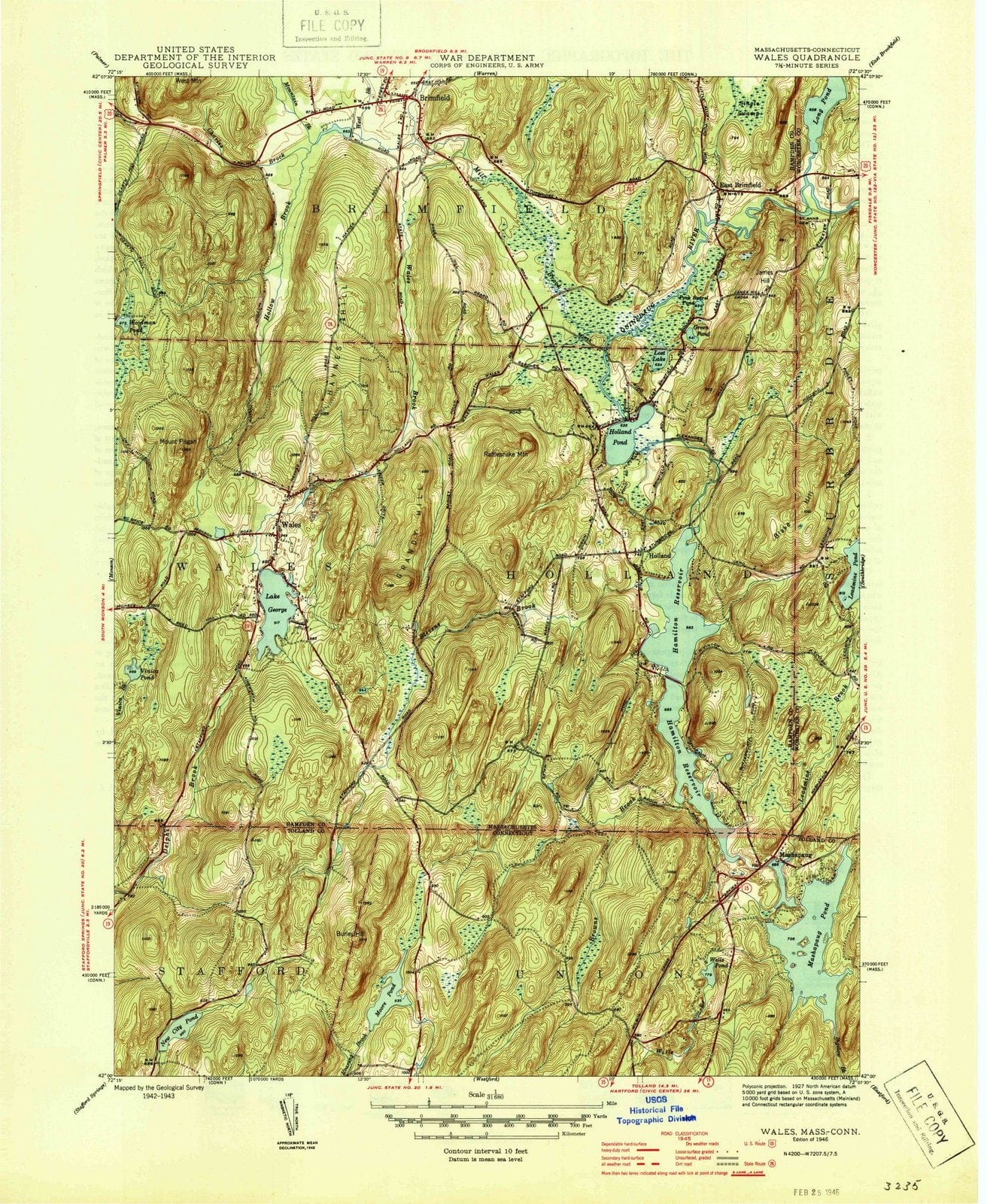 1946 Wales, MA - Massachusetts - USGS Topographic Map
