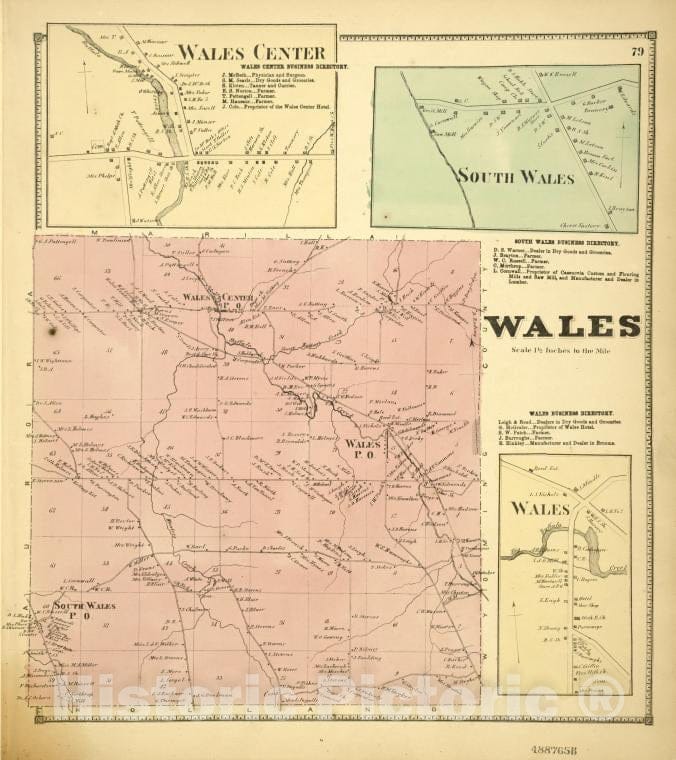Historic 1866 Map - Wales Center [Village]; Wales Center Business Directory; South W