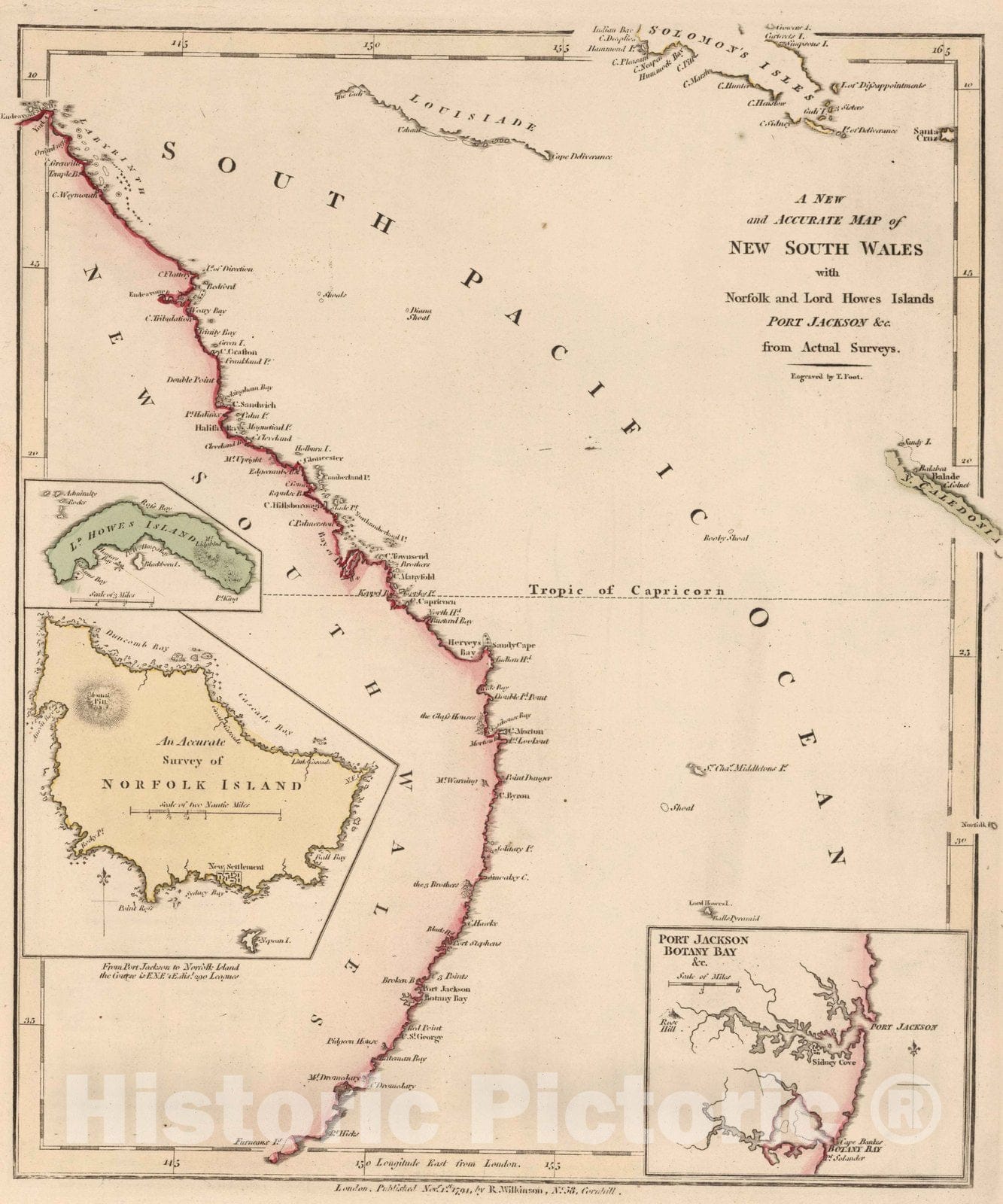 1794 A New Accurate Map of New South Wales with Norfolk and Lord Howes Islands Port Jackson, c.