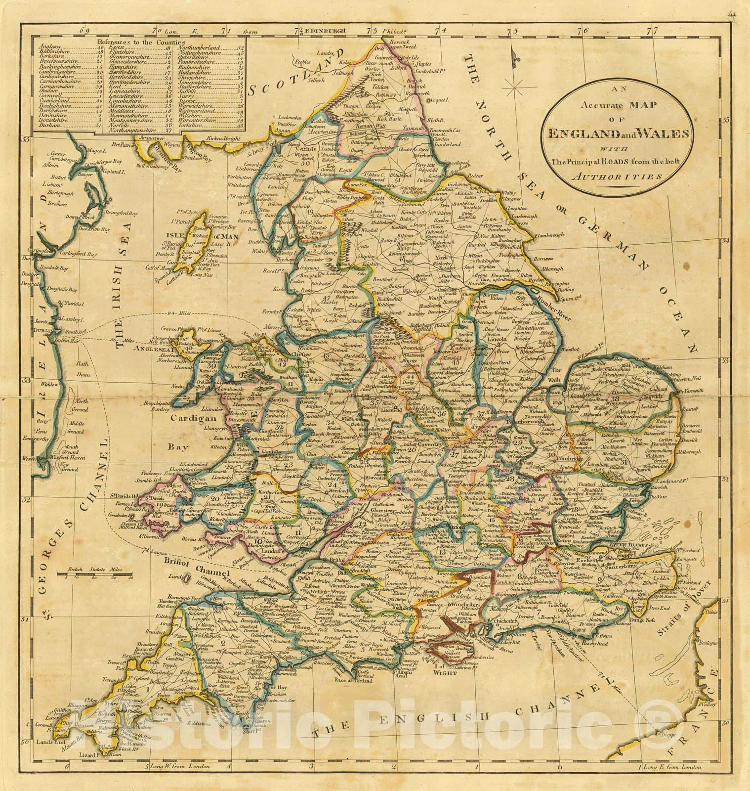 • .Historic Map : 1814 Accurate map of England and Wales with the principal roads from the best authorities : Vintage Wall Art