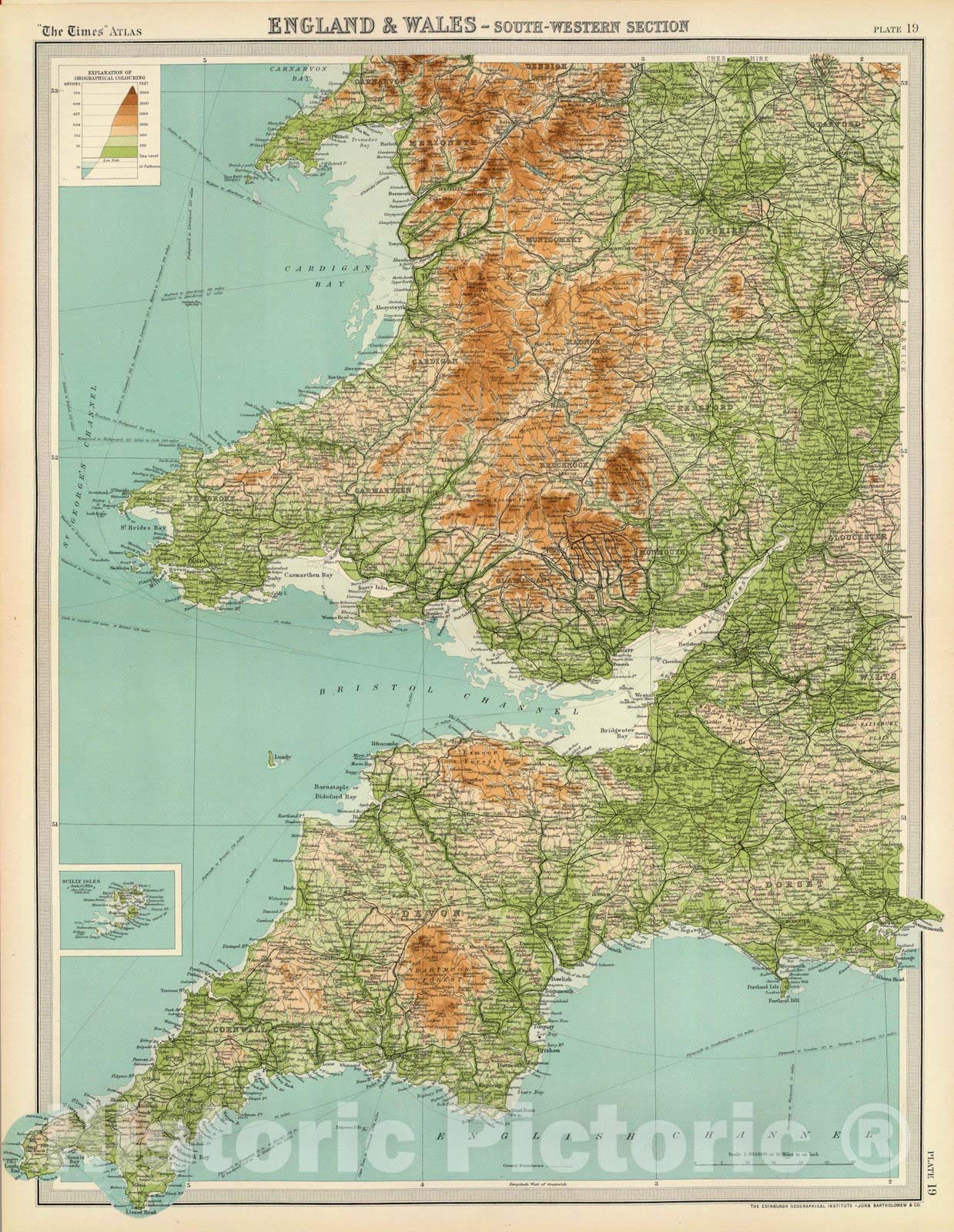 Historic Map : 1922 England & Wales, south-western section; Scilly Isles. - Vintage Wall Art