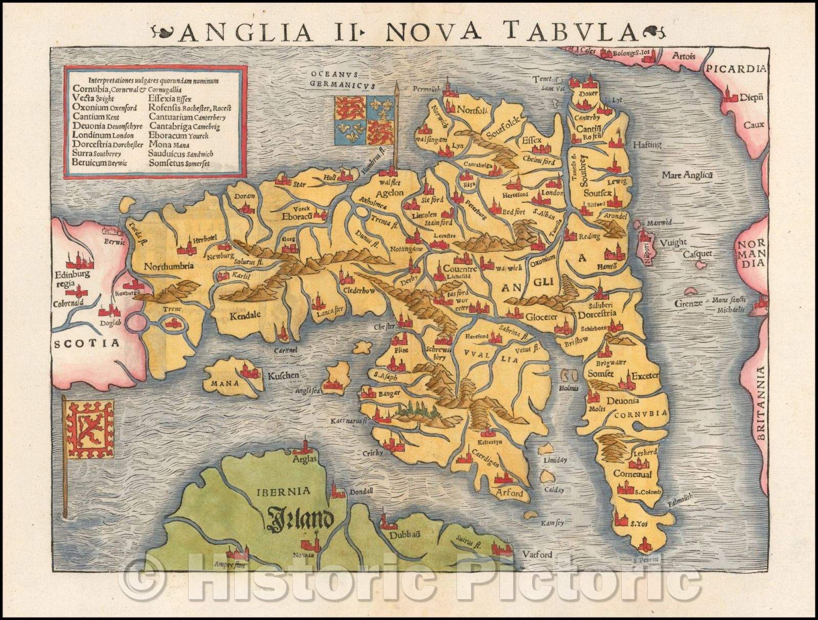 Anglia II Nova Tabula [England & Wales]/England II Nova Tabula [England and Wales], 1545, Sebastian M?nster