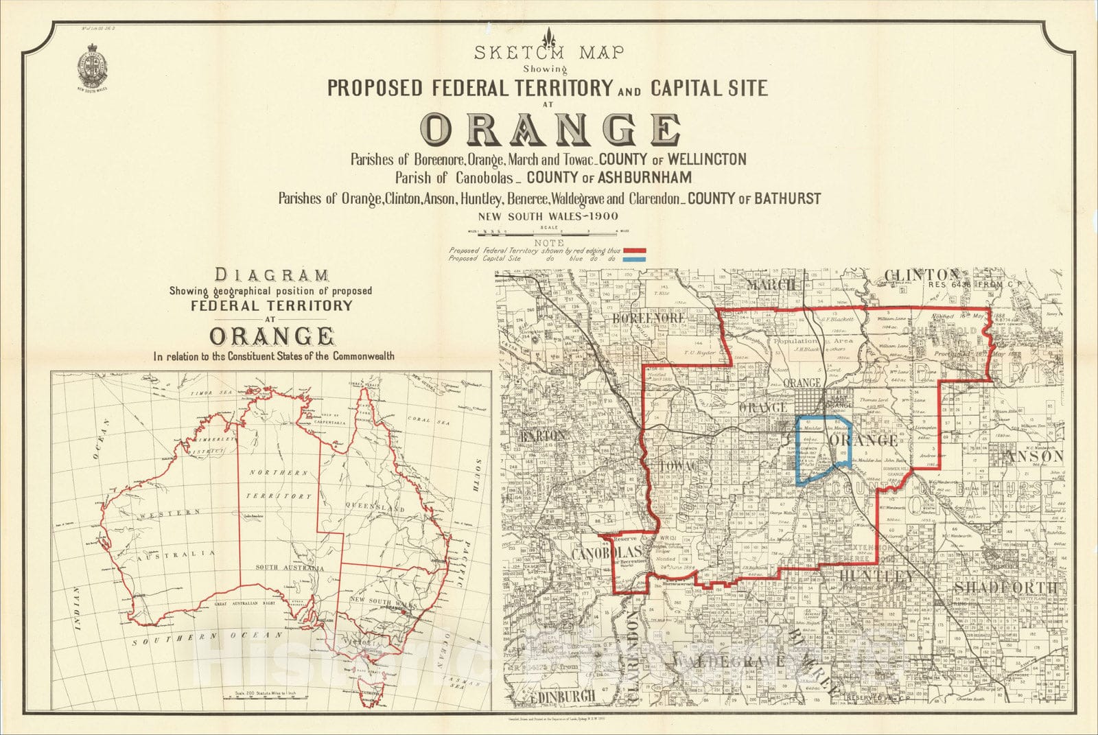 Historic Map : Boreenore, Orange, March, and Towac, County of Wellington; County of Bathurst, New South Wales 19, 1900, New South Wales Department of Lands, Vintage Wall Art