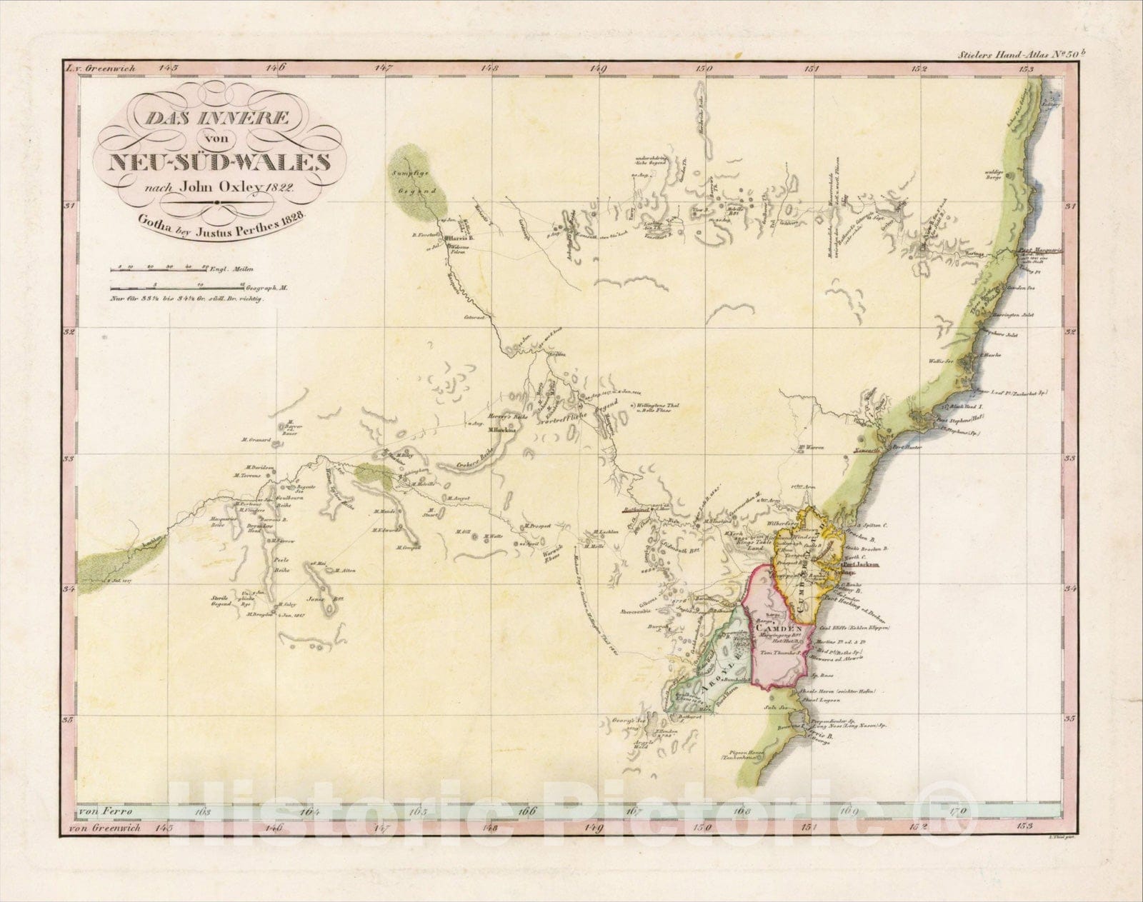 Historic Map : Das Innere von Neu-Sud-Wales nach John Oxley 1822, 1828, 1828, Justus Perthes, Vintage Wall Art