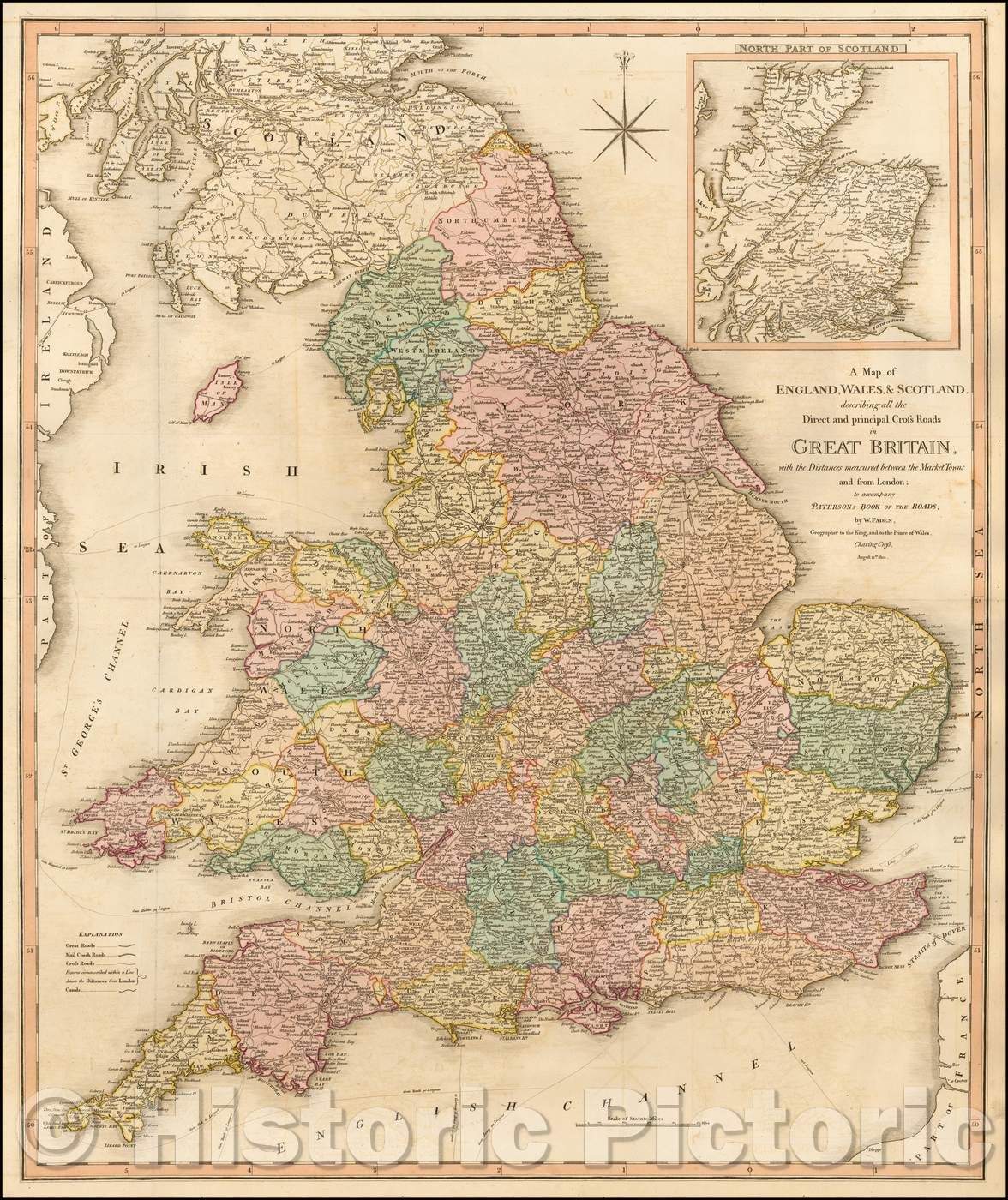 Historic Map - A Map of England, Wales & Scotland describing all the Direct and principal Cross Roads in Great Britain, 1801, William Faden v2