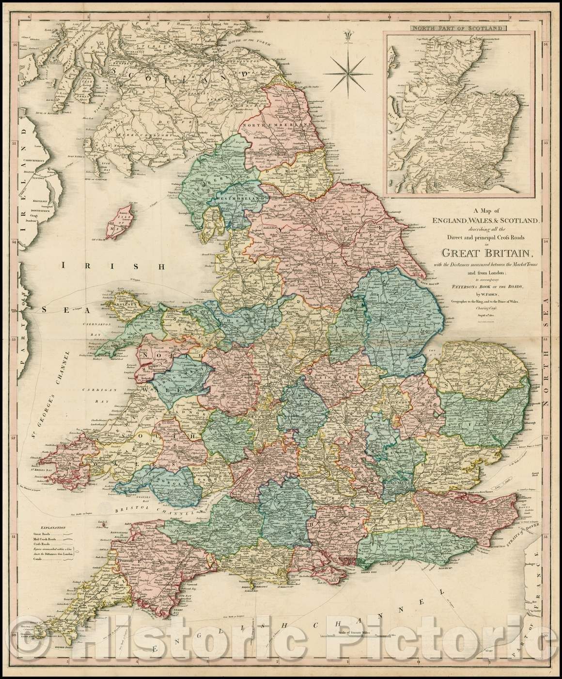 Historic Map - A Map of England, Wales & Scotland describing all the Direct and principal Cross Roads in Great Britain, 1801, William Faden v1
