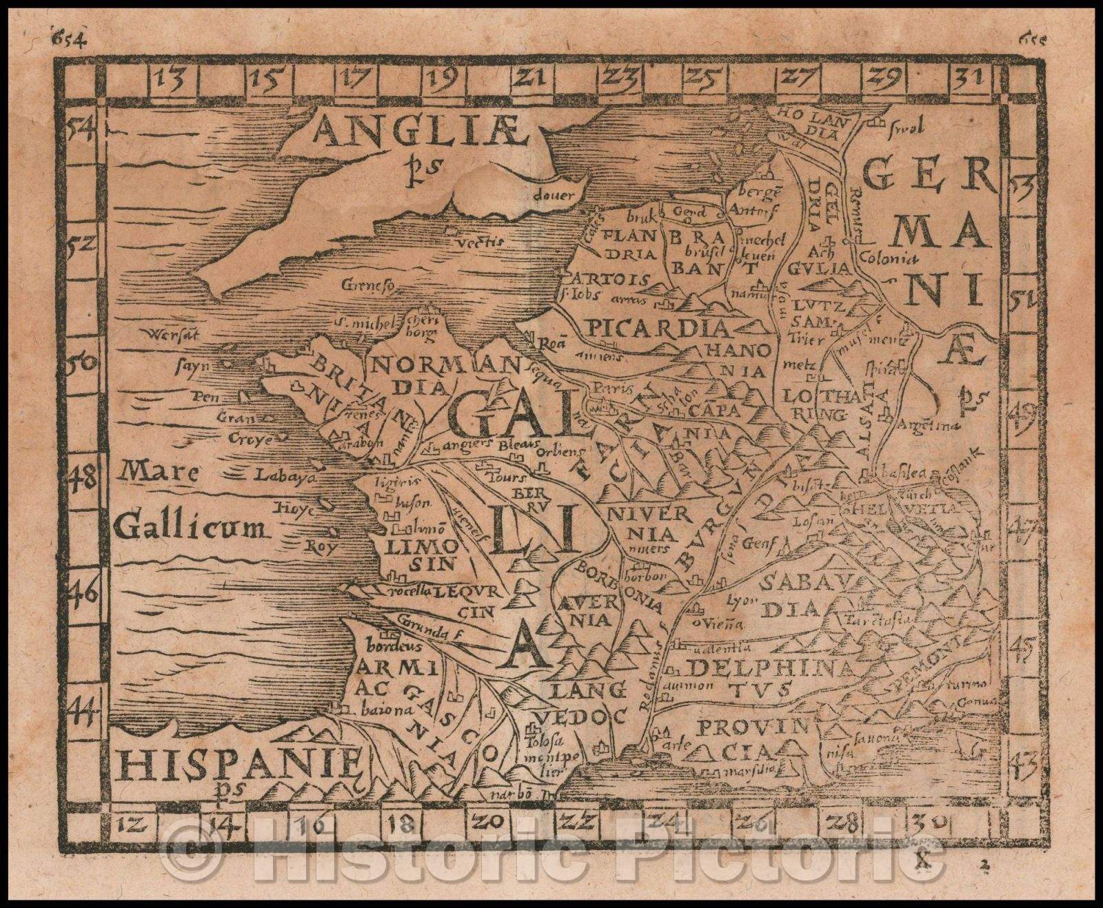 • .Historic Map - France andEngland & Wales, 1561, Johann Honter - Vintage Wall Art