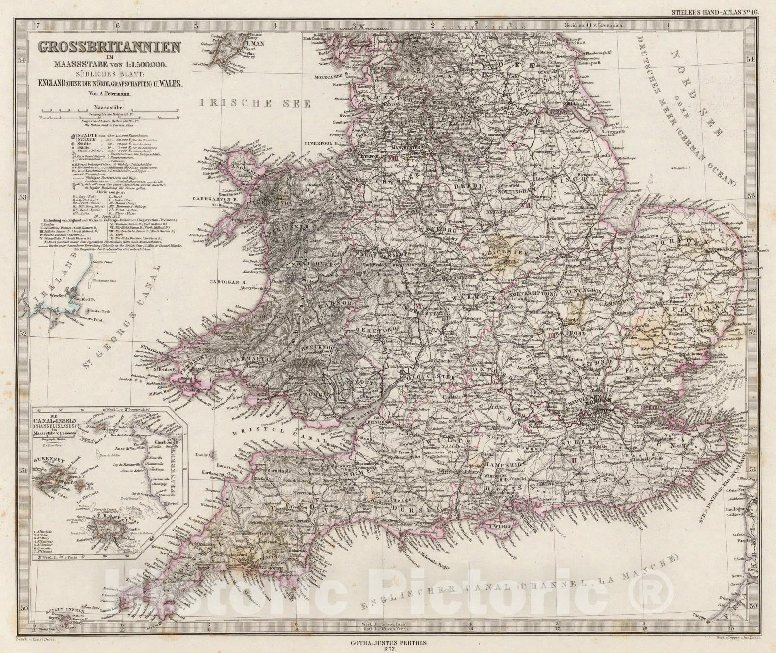Historic Map : Grossbritannien. Sudliches Blatt: England U. Wales., 1875, Vintage Wall Art