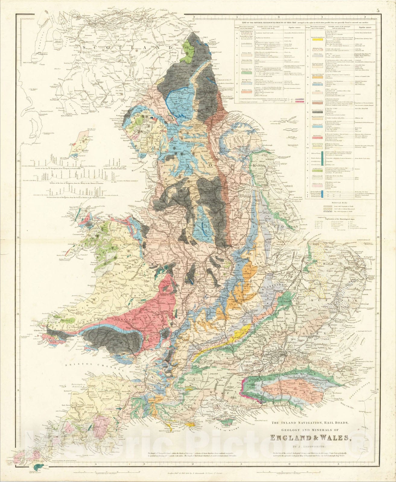 Historic Map : The Inland Navigation, Rail Roads, Geology and Minerals of England and Wales , 1834, John Arrowsmith, Vintage Wall Art