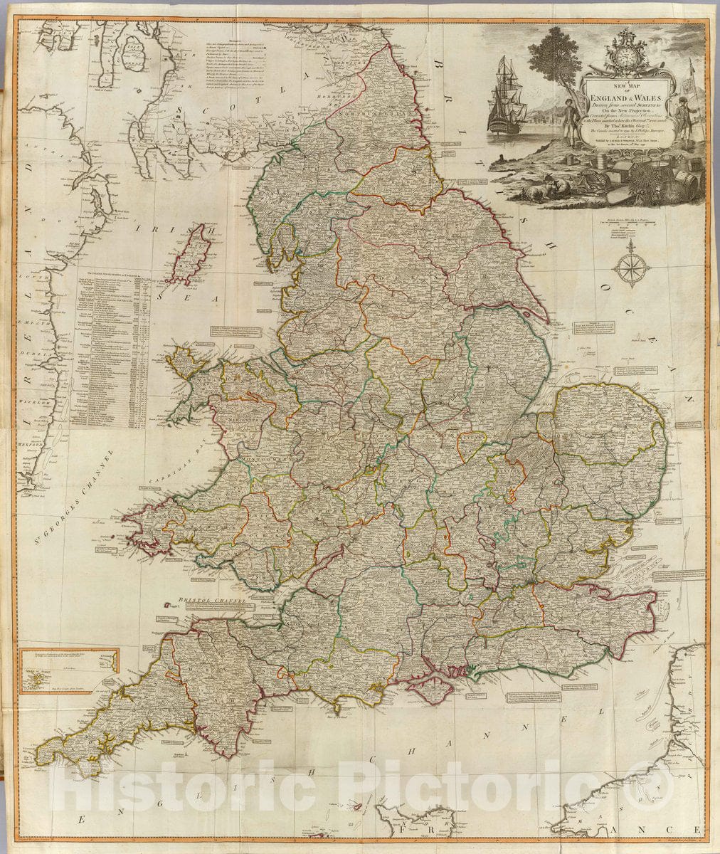 Historic Map : A new map of England & Wales. Drawn from several surveys &c. on the new projection : corrected from astronomical observations, 1794 Atlas - Vintage Wall Art