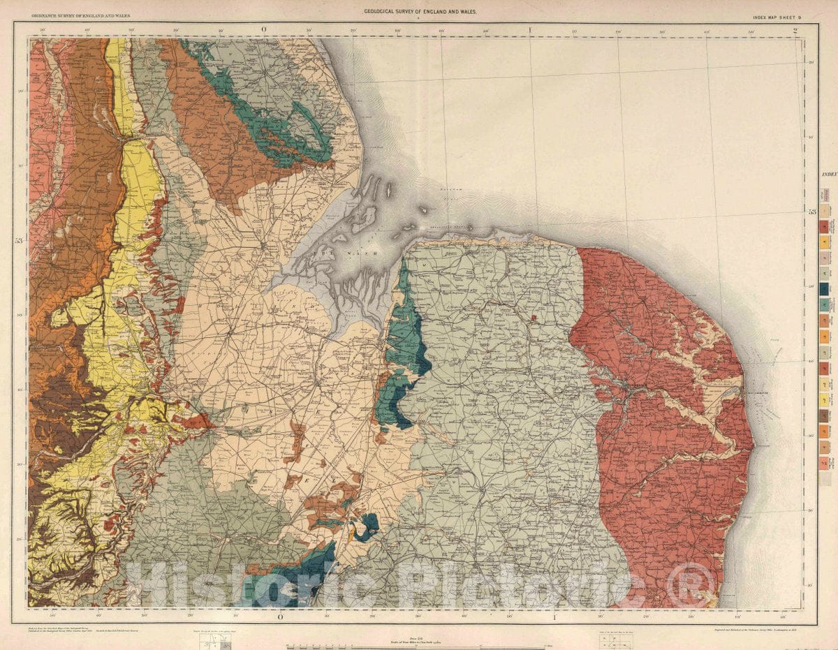 Historic Map : Sheet 9. Ordnance Survey of England and Wales, 1891 Geologic Atlas - Vintage Wall Art