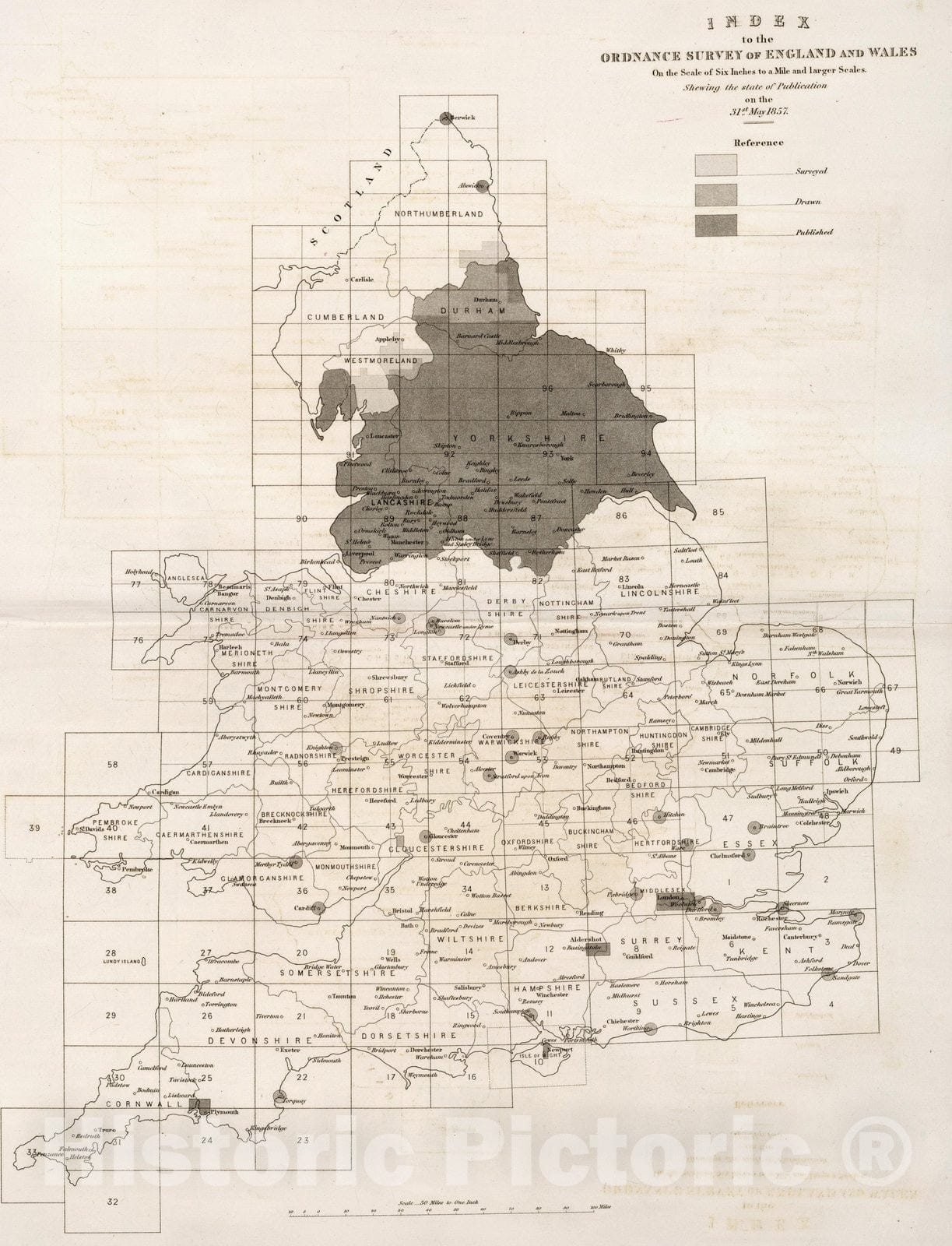 Historic Map : Survey Book, Index to the Ordnance Survey of England and Wales 1857 - Vintage Wall Art