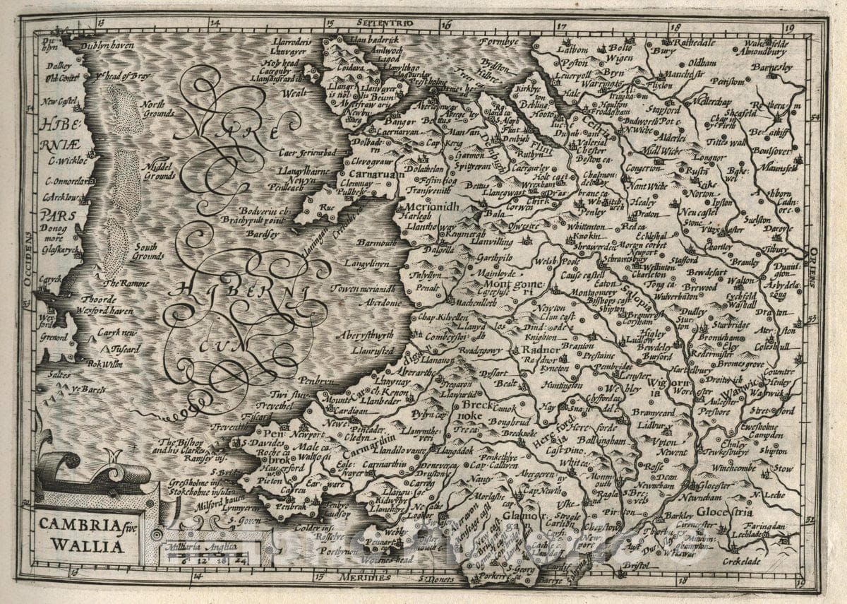 Wales, Cambria sive Wallia. (to accompany) Atlas Minor Gerardi Mercatoris, 1607 Atlas , Vintage Wall Art