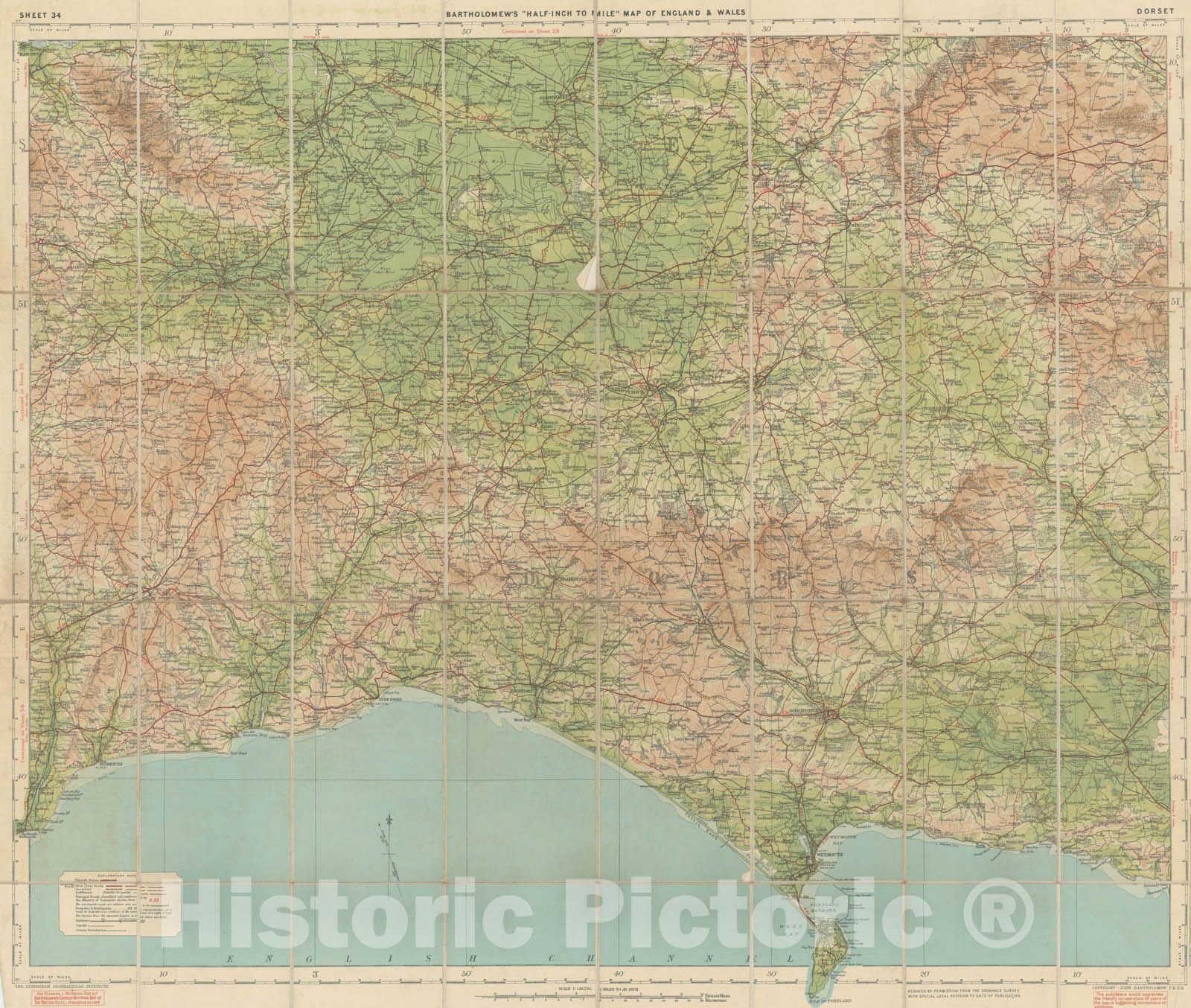 Historic Map : Bartholomew's Half-Inch to Mile Maps of England and Wales , v2, Vintage Wall Art