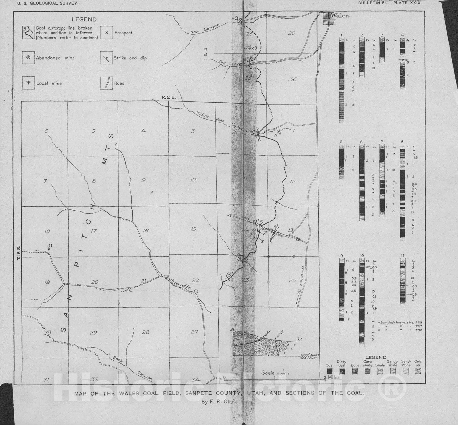 Map : Coal near Wales, Sanpete County, Utah, 1914 Cartography Wall Art :