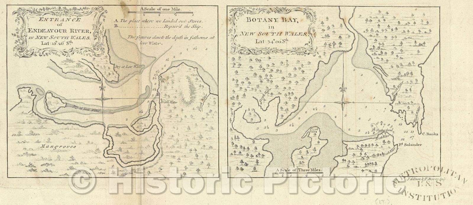 Historic Map : Entrance of Endeavour River in New South Wales Botany Bay in New South Wales, 1771 , Vintage Wall Art