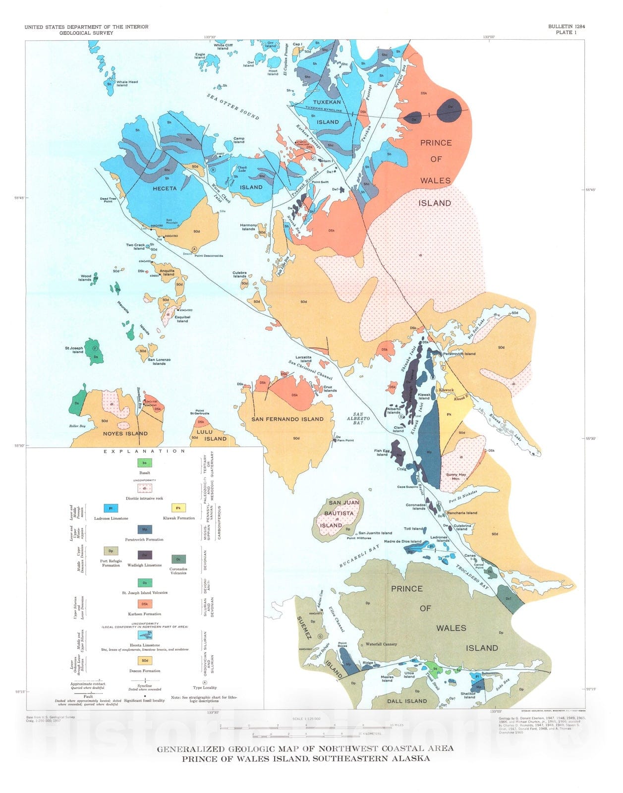 Map : Paleozoic stratigraphy in the northwest coastal area of Prince of Wales Island, southeastern Alaska, 1970 Cartography Wall Art :