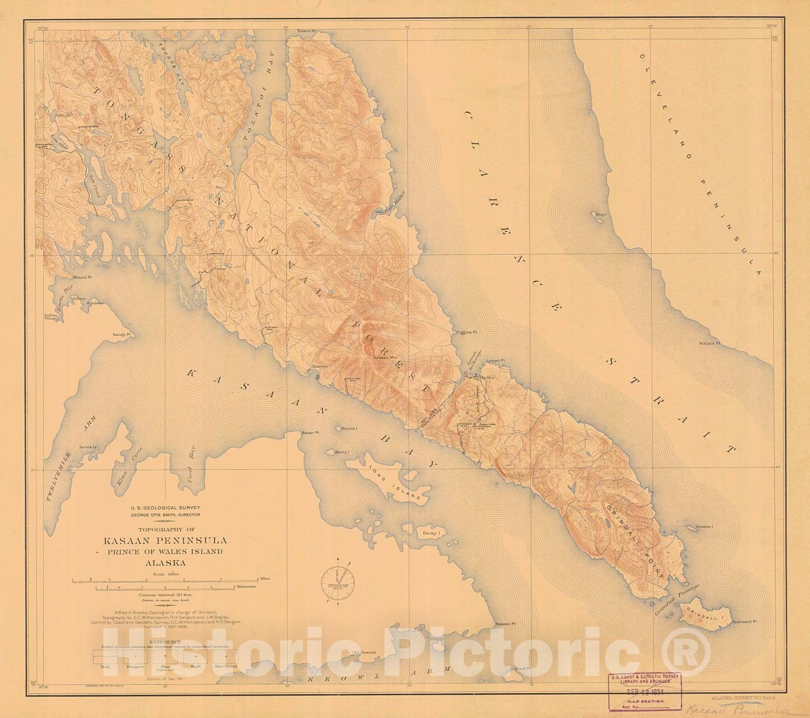 • .Historic Nautical Map - Topography Of Kassan Peninsula Prince Of Wales Island, 1911 NOAA Chart - Alaska (AK) - Vintage Wall Art