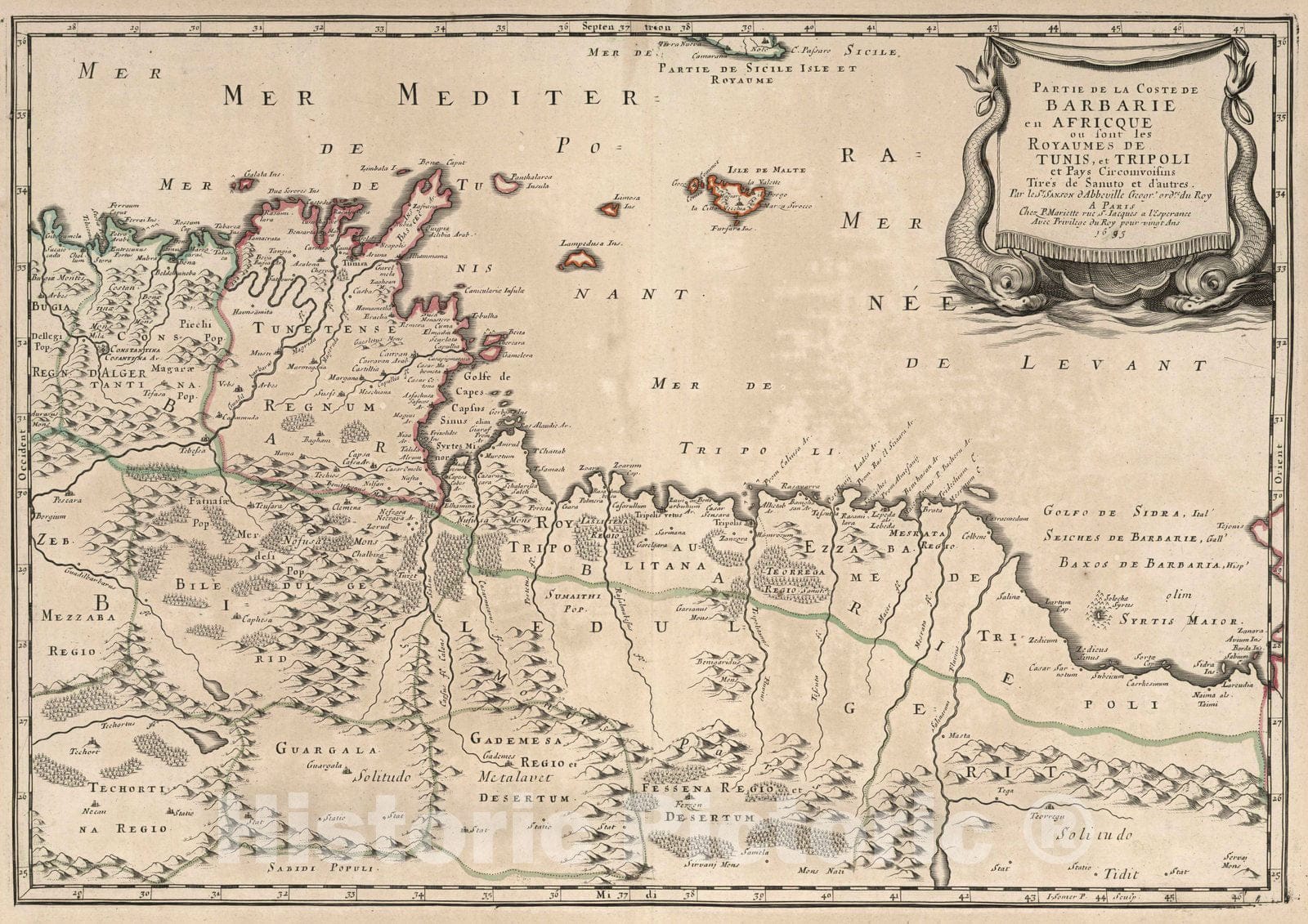 Historic Map : 1695 Barbary Coast in Africa or the Kingdoms of Tunis, and Tripololi. - Vintage Wall Art