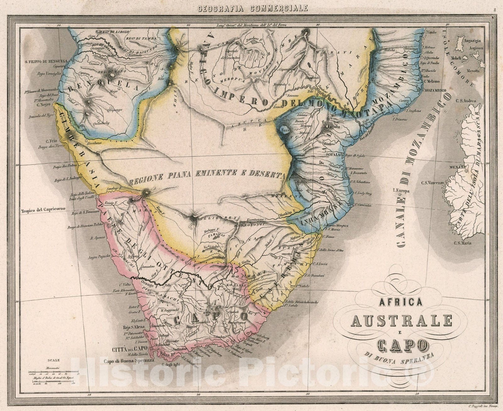 • .Historic Map : 8. Africa Austale e Capo di Buona Speranza., 1858, Vintage Wall Art