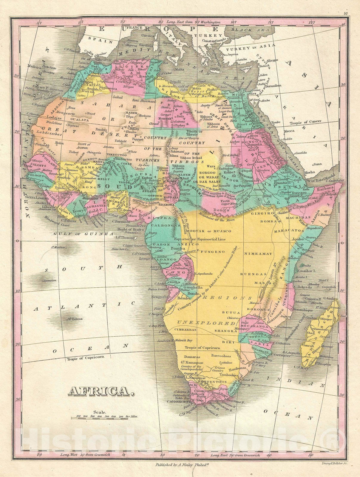 Historic Map : Africa, Finley, 1828, Vintage Wall Art