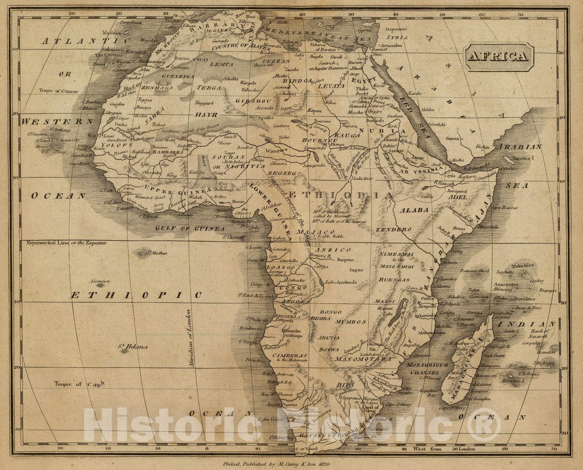 Historic Map : Africa. Philad, Published by M. Carey & Son, 1820. (1825), 1825 Atlas - Vintage Wall Art