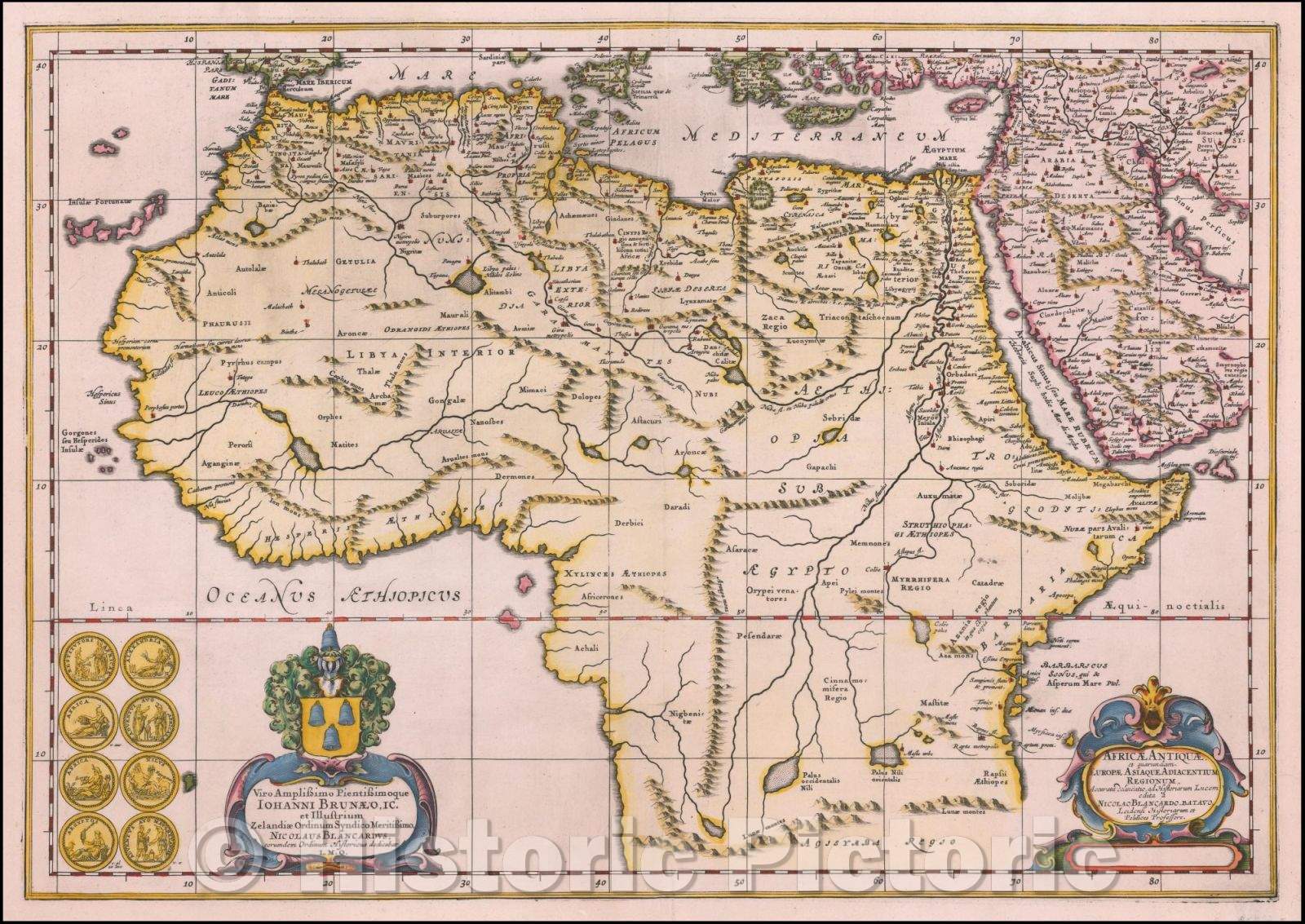 Historic Map - Africae Antiquae et quarundam Europae Asiaque/Map of Ancient Africa, focusing on the northern and central portion of continent, 1652 - Vintage Wall Art