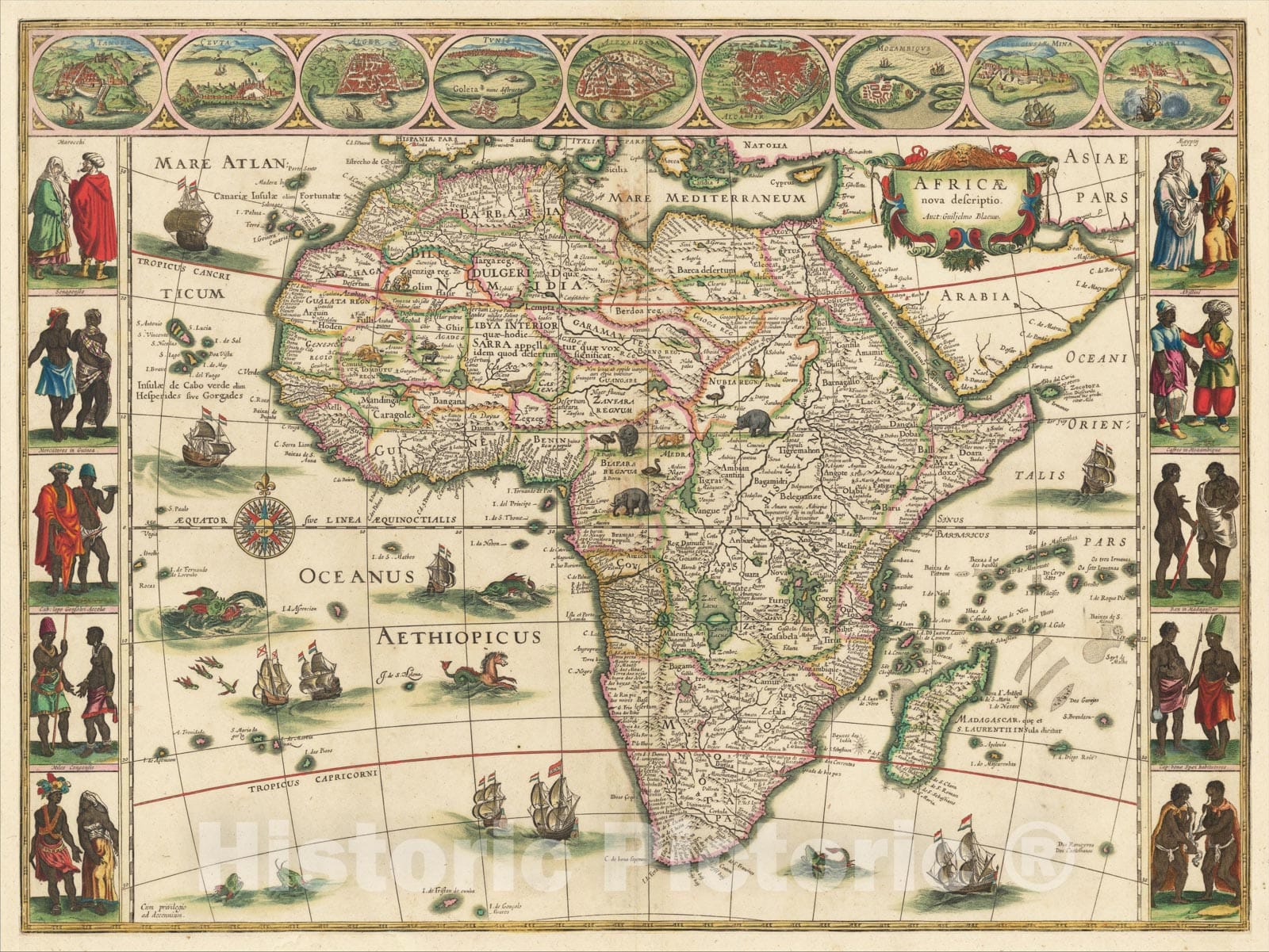 Africae nova descriptio , 1635, Willem Janszoon Blaeu, v2, Vintage Wall Art :