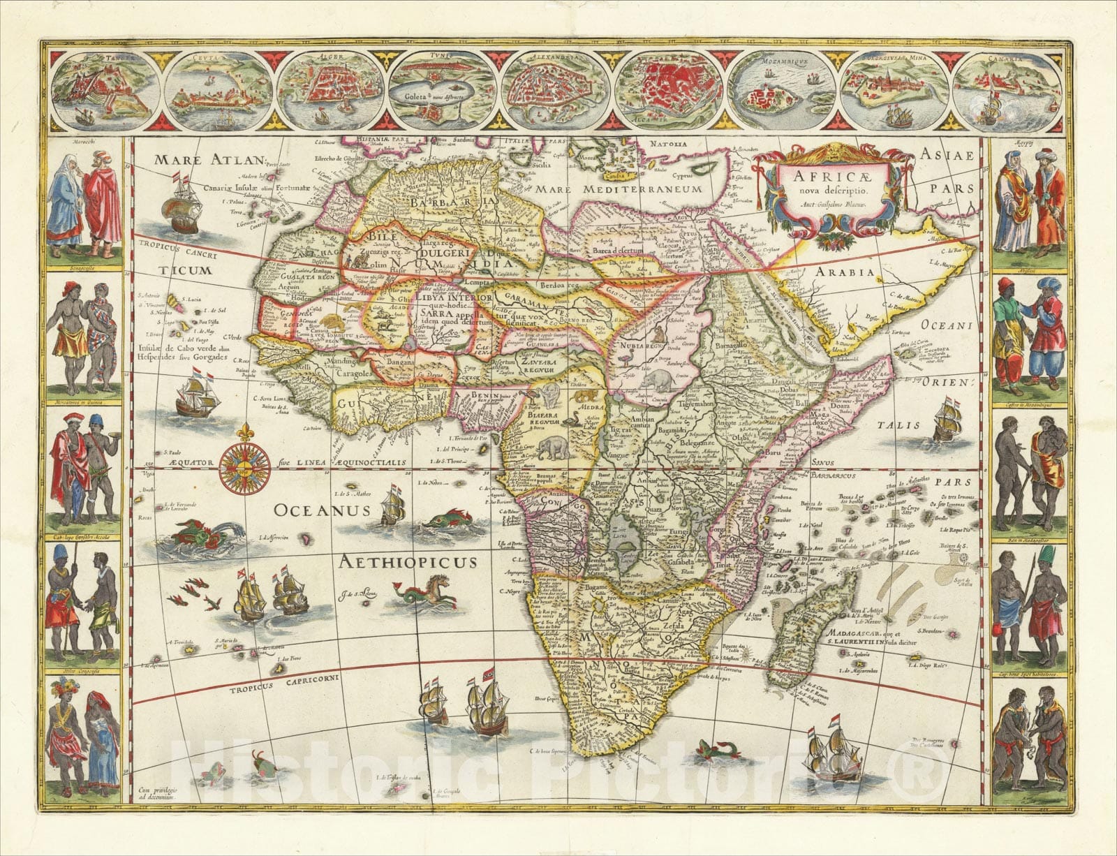 Historic Map : Africae nova descriptio , c1663, Willem Janszoon Blaeu, Vintage Wall Art