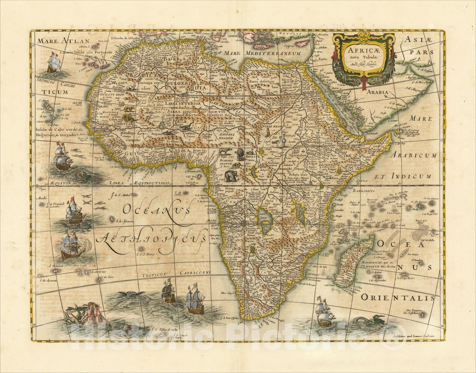 Historic Map : Africae nova Tabula, c1646, Henricus Hondius, Vintage Wall Art