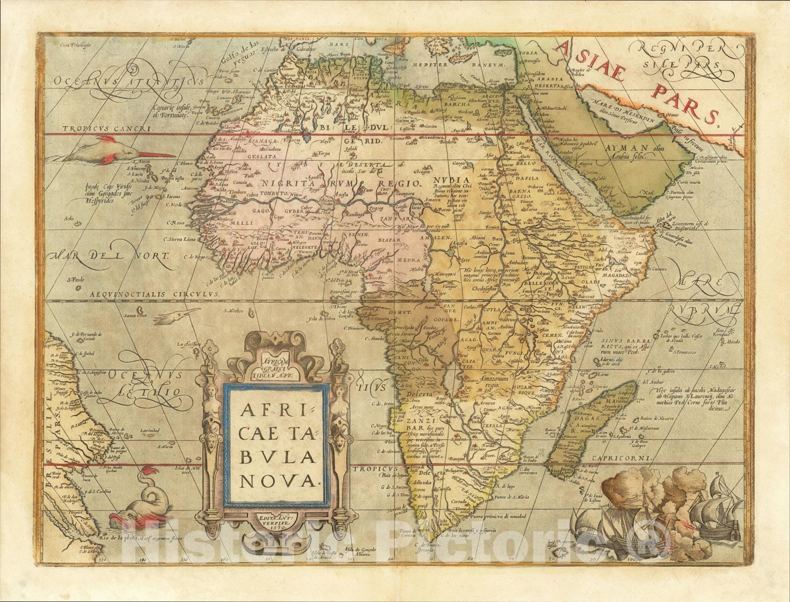 • .Historic Map : Africae Tabula Nova, 1579, Abraham Ortelius, Vintage Wall Art
