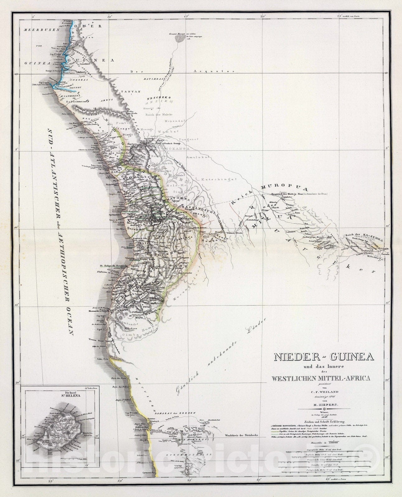 Historic Map : Angola; Namibia, Africa, Central 1846 Nieder Guinea, W. Mittel-Africa. , Vintage Wall Art