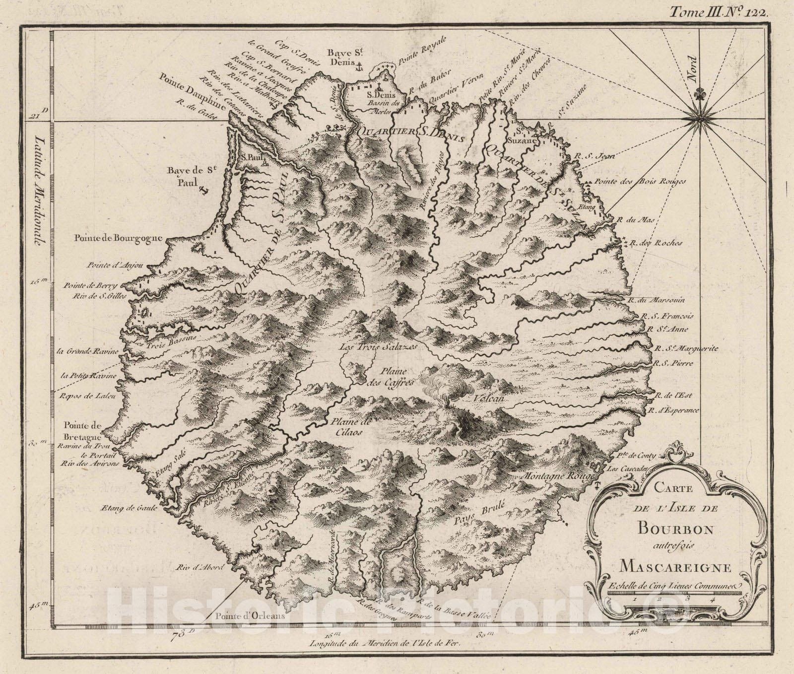 Historic Map : Bourbon, Africa 1764 Carte de l'Isle de Bourbon autrefois Mascareigne , Vintage Wall Art