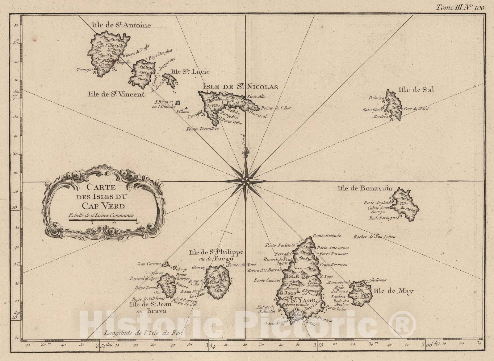 Historic Map : Cape Verde Islands, Africa 1764 Carte des Isles du Cap Verd , Vintage Wall Art