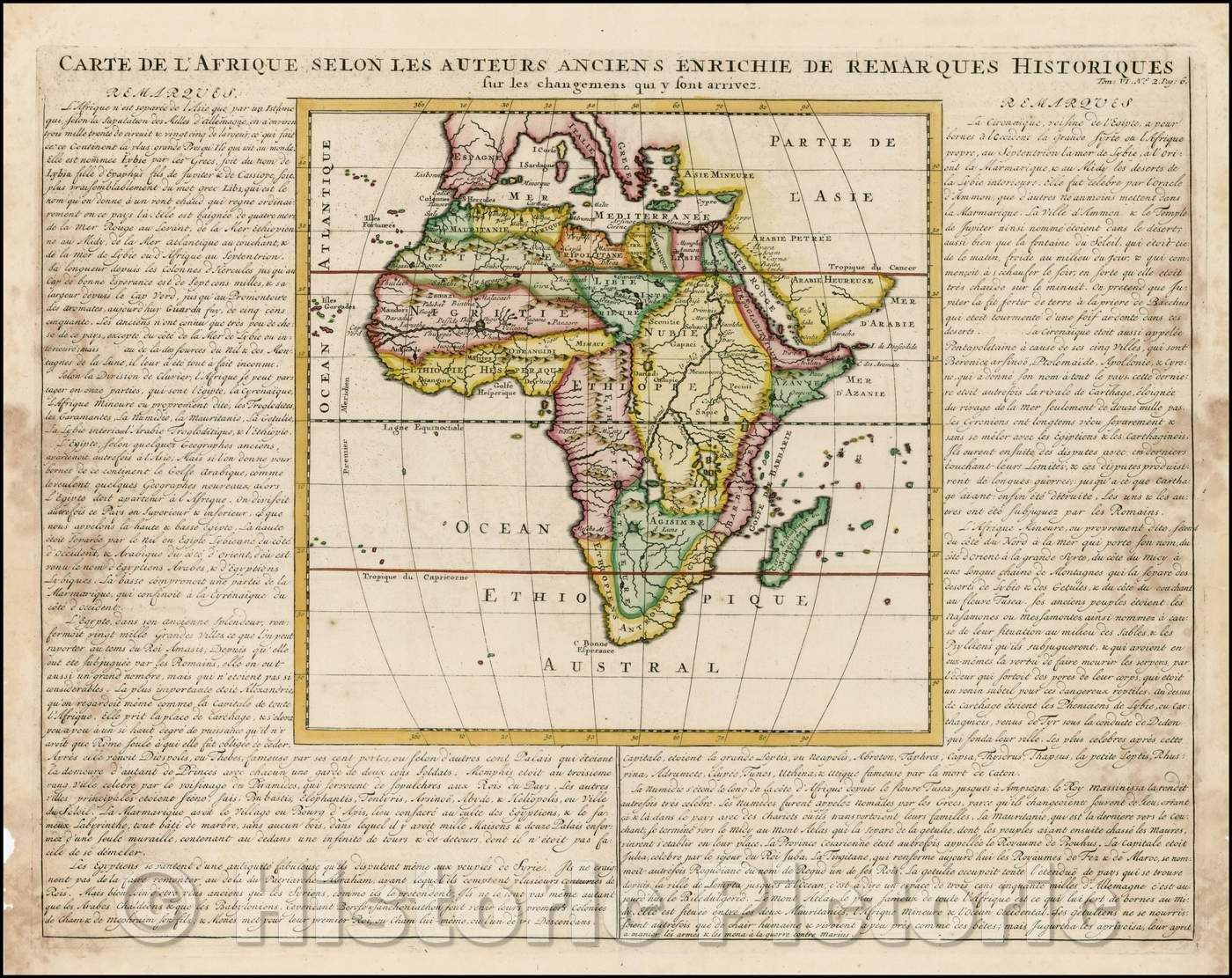Carte de L'Afrique selon les auteurs anciens enrichie de remarques histori/Africa Card by ancient authors enriched with historical remarks, 1719