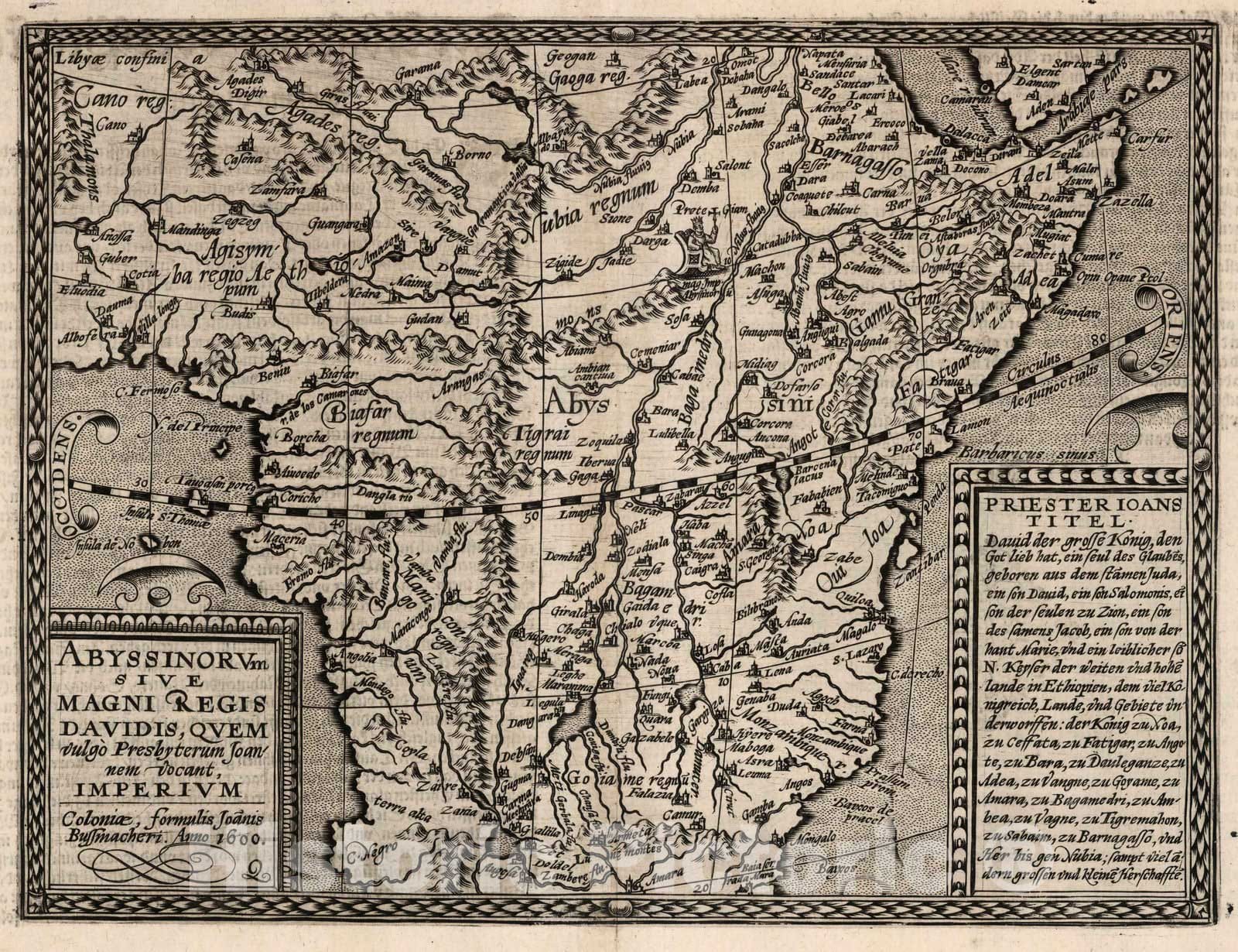 Historic Map : Central Africa3. Abyssinorum sive magni Regis Davidis, quem vulgo Presbyterum Joannem vacant, Imperium. 1600 , Vintage Wall Art