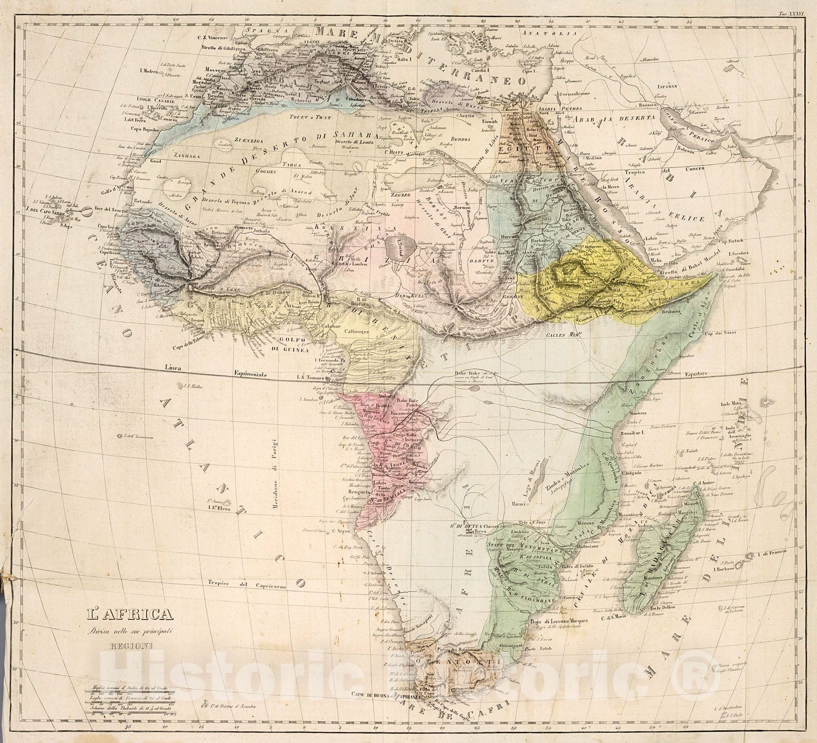 Historic Map : L'Africa : Divisa nelle sue principali regioni, 1842, Vintage Wall Decor