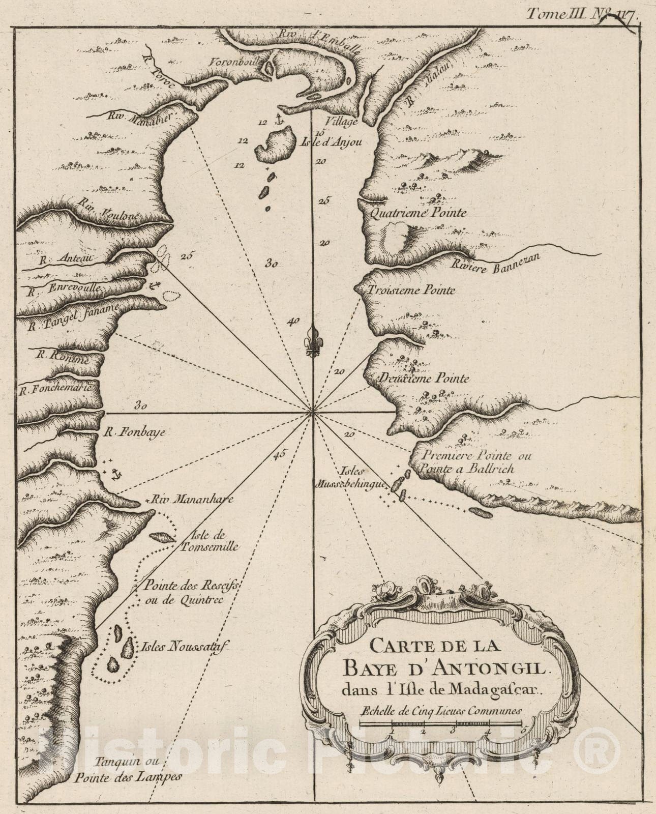 Historic Map : Madagascar, , Africa 1764 Carte de la Baye d'Antongil dans l'Isle de Madagascar , Vintage Wall Art